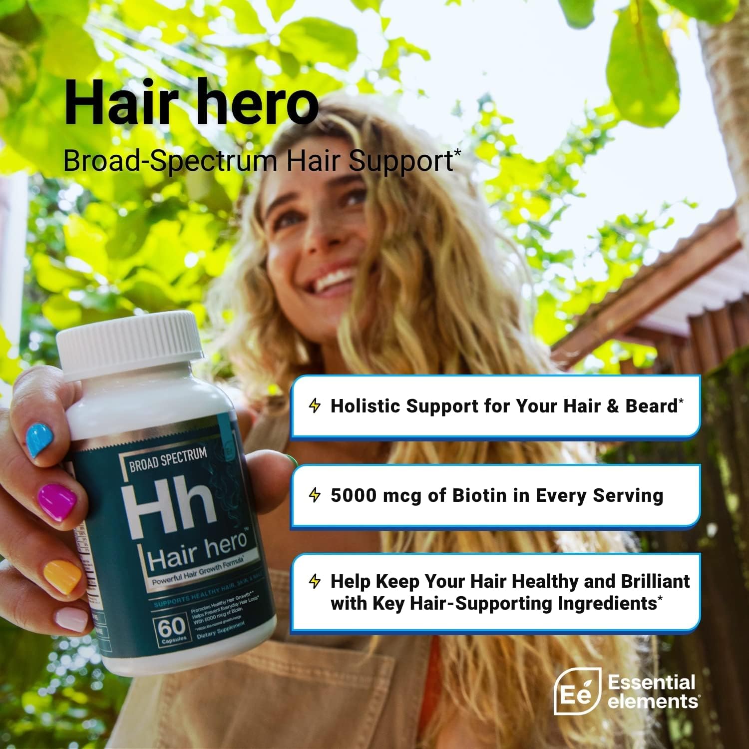 Essential Elements Hair Hero - Broad-Spectrum Hair Formula - Healthy Hair, Skin, And Nails - 5000 Mcg Biotin 30 Day Supply (2-Pack)