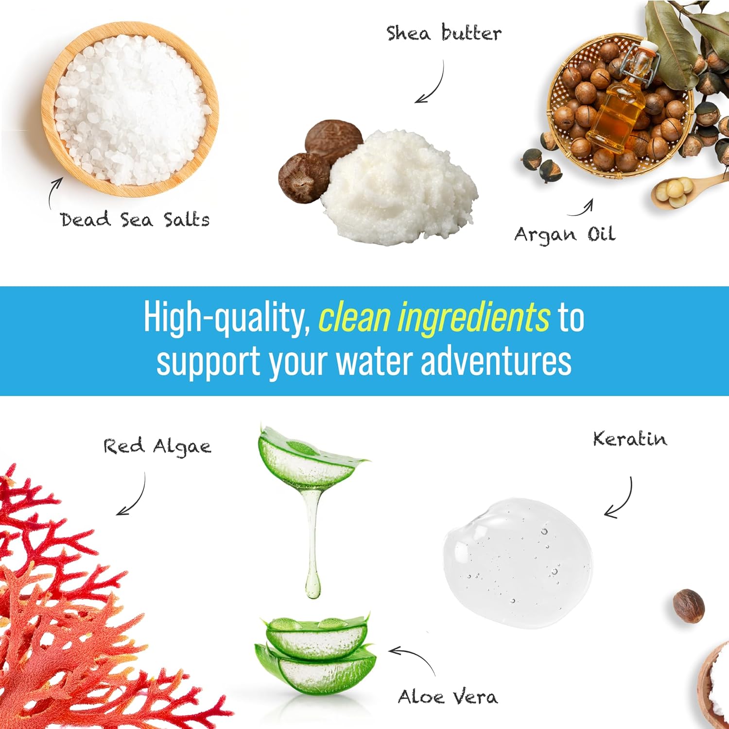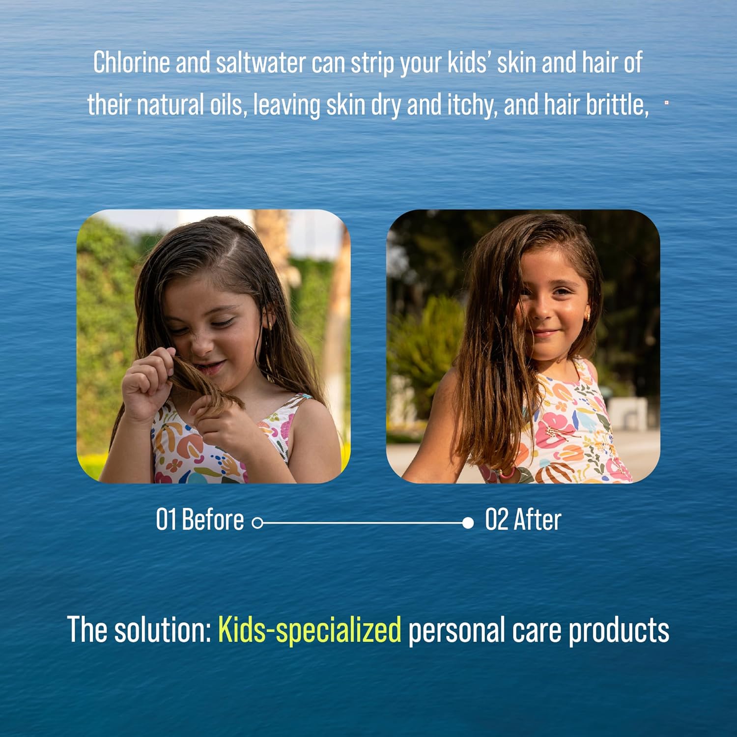Removes chlorine while hydrating dry skin and hair. Soothes itchy scalps and restores softness after every swim session