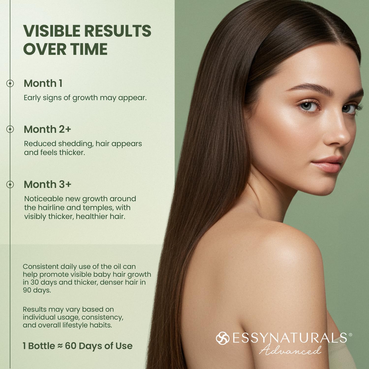 About this item Top-Quality Power Ingredients: Essynaturals hair growth serum features a unique blend of natural ingredients, including Castor Oil, Caffeine, Rosemary Oil, and Biotin. Castor Oil is rich in omega-6 essential fatty acids, minerals, proteins, and vitamin E, promoting healthier and stronger hair. Healthier & Fuller Hair: Our hair growth oil fortifies thinning and weak hair, resulting in noticeably thicker, fuller, and healthier locks. With this hair loss treatment for women, hair becomes smoother and shinier, with reduced frizz and breakage. Impressive Hair Growth: Our hair oil for hair growth is packed with vitamins, antioxidants, and nutrients. Our hair thickening products for women formula effectively encourages stronger and faster hair growth for both men and women. Easy to Use: Apply 2-4 drops of Essynaturals Hair Growth Oil to your scalp and hair, massaging with your fingers for 2-3 minutes until your hair fully absorbs the nutrients. Use twice daily for a flawless hair appearance. Safe & Gentle: EssyNaturals hair growth oil is a gentle hair loss treatment that delivers remarkable results. Our rosemary oil for hair growth is cruelty free. See more product details,Top-Quality Power Ingredients: Essynaturals hair growth serum features a unique blend of natural ingredients, including Castor Oil, Caffeine, Rosemary Oil, and Biotin. Castor Oil is rich in omega-6 essential fatty acids, minerals, proteins, and vitamin E, promoting healthier and stronger hair,Healthier & Fuller Hair: Our hair growth oil fortifies thinning and weak hair, resulting in noticeably thicker, fuller, and healthier locks. With this hair loss treatment for women, hair becomes smoother and shinier, with reduced frizz and breakage,Impressive Hair Growth: Our hair oil for hair growth is packed with vitamins, antioxidants, and nutrients. Our hair thickening products for women formula effectively encourages stronger and faster hair growth for both men and women,Easy to Use: Apply 2-4 drops of Essynaturals Hair Growth Oil to your scalp and hair, massaging with your fingers for 2-3 minutes until your hair fully absorbs the nutrients. Use twice daily for a flawless hair appearance,Safe & Gentle: EssyNaturals hair growth oil is a gentle hair loss treatment that delivers remarkable results. Our rosemary oil for hair growth is cruelty free