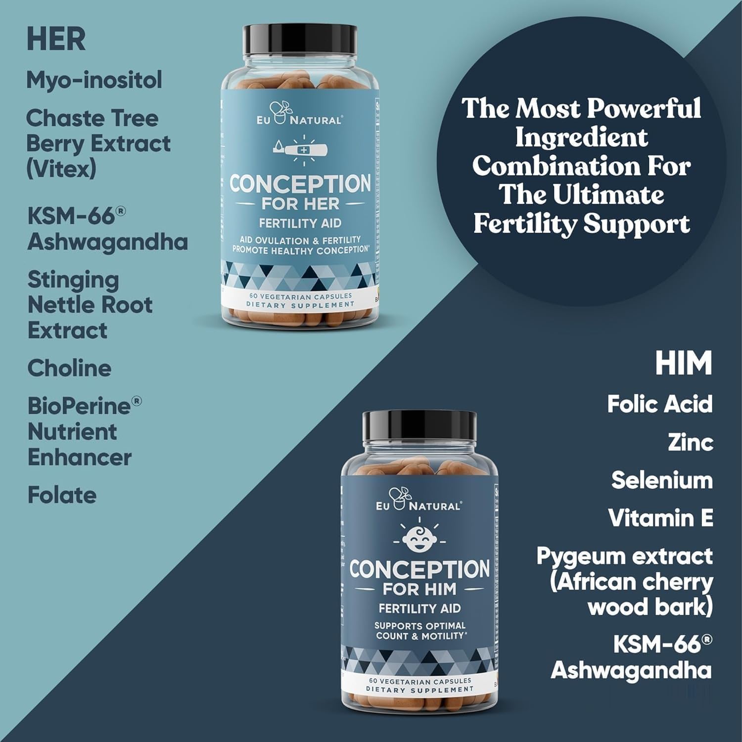Eu Natural Conception Fertility For Her & Him Bundle - Fertility Supplements Combo For Women & Men – Prenatal Vitamins – Promote Hormone Balance, Cycle Consistency, Aid Ovulation – 120 Count