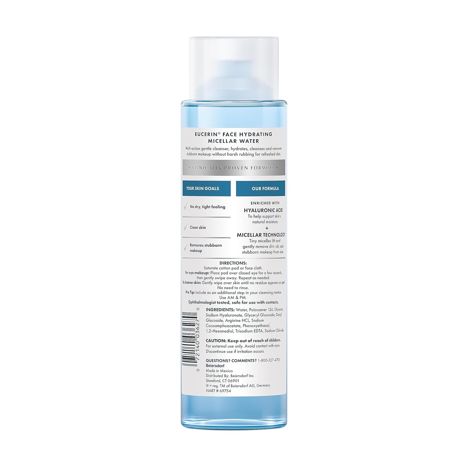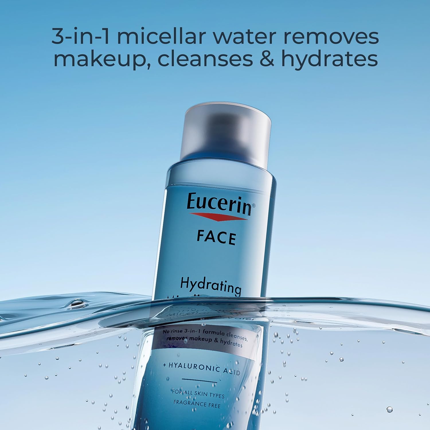 Eucerin Face Gentle Cleansing Hydrating Micellar Water With Hyaluronic Acid, Face Cleanser And Makeup Remover, Fragrance Free And Non-Drying For All Skin Types, 13.5 Fl Oz Bottle
