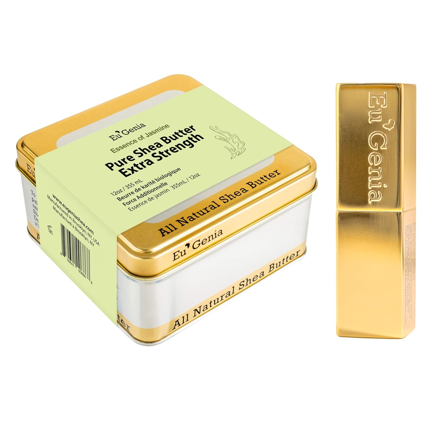Eu'Genia Shea Butter And Lip Balm, 100% Pure Unrefined Ghanaian Shea, Premium Face & Body Moisturizer For All Skin And Hair Types (Jasmine Set, 12 Oz)
