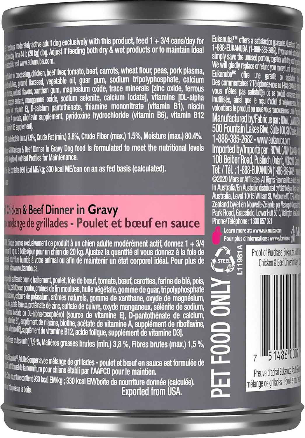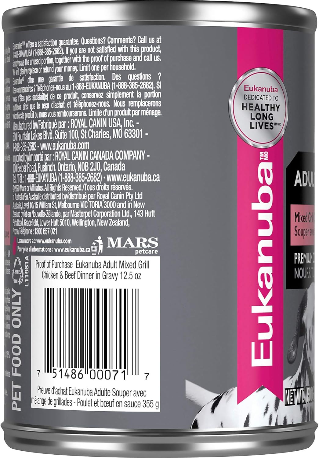 Eukanuba Adult Mixed Grill Chicken & Beef Dinner In Gravy Canned Dog Food, 12.5 Ounce Cans (Pack Of 12)