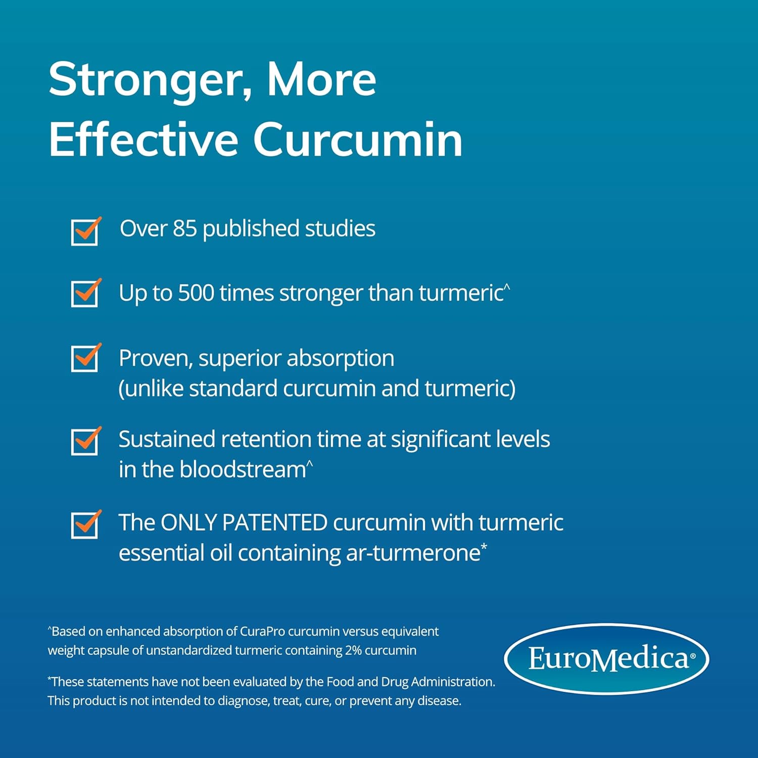 DESCRIPTION : Euromedica CuraPro 375 mg - 60 Softgels, Pack of 2 - High Potency Turmeric Curcumin Supplement - Liver, Brain & Immune Support - 120 Total Servings