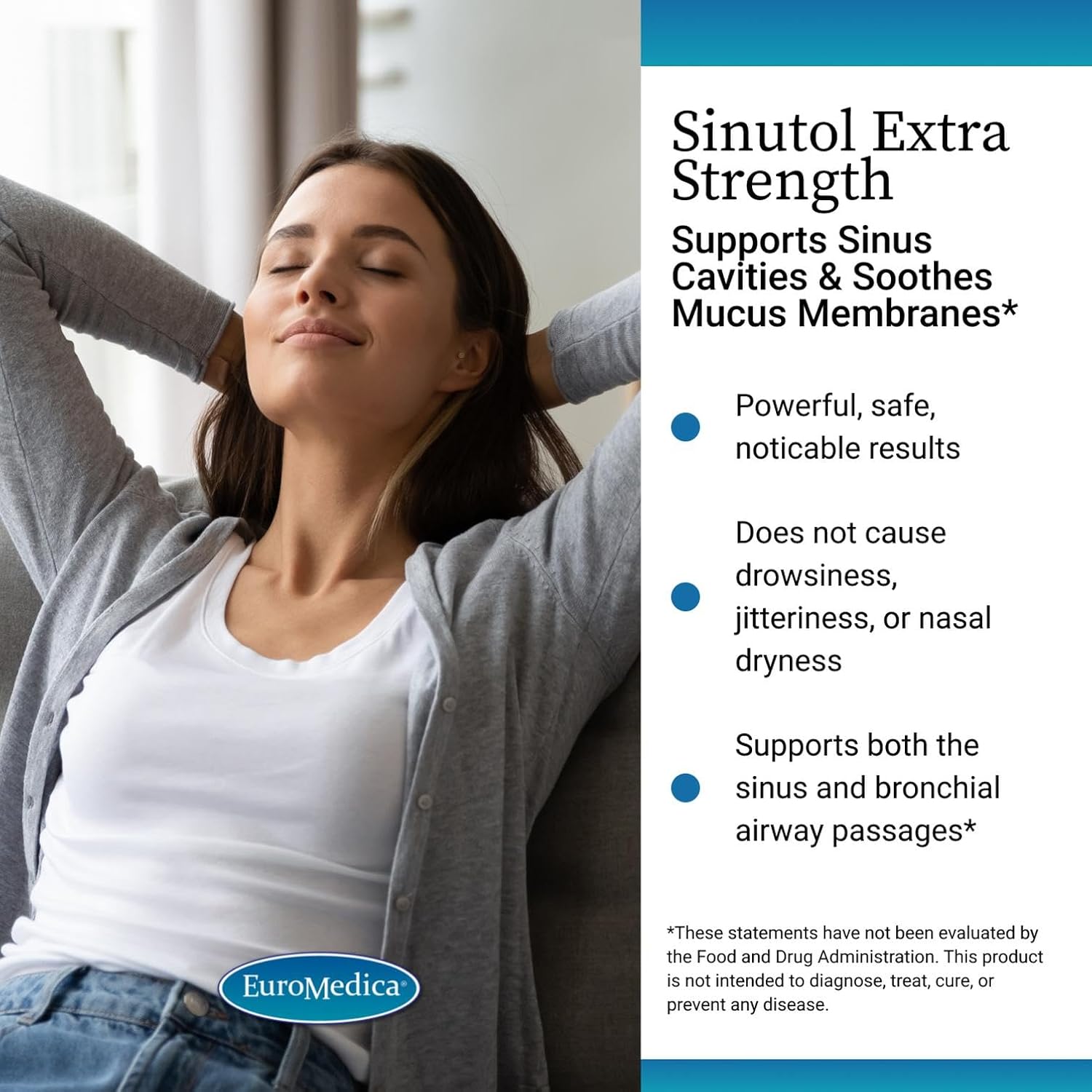 Sinus & Immune Support: Sinutol Extra Strength is a dietary supplement that aids the soothing of mucous membranes and supports comfortable breathing