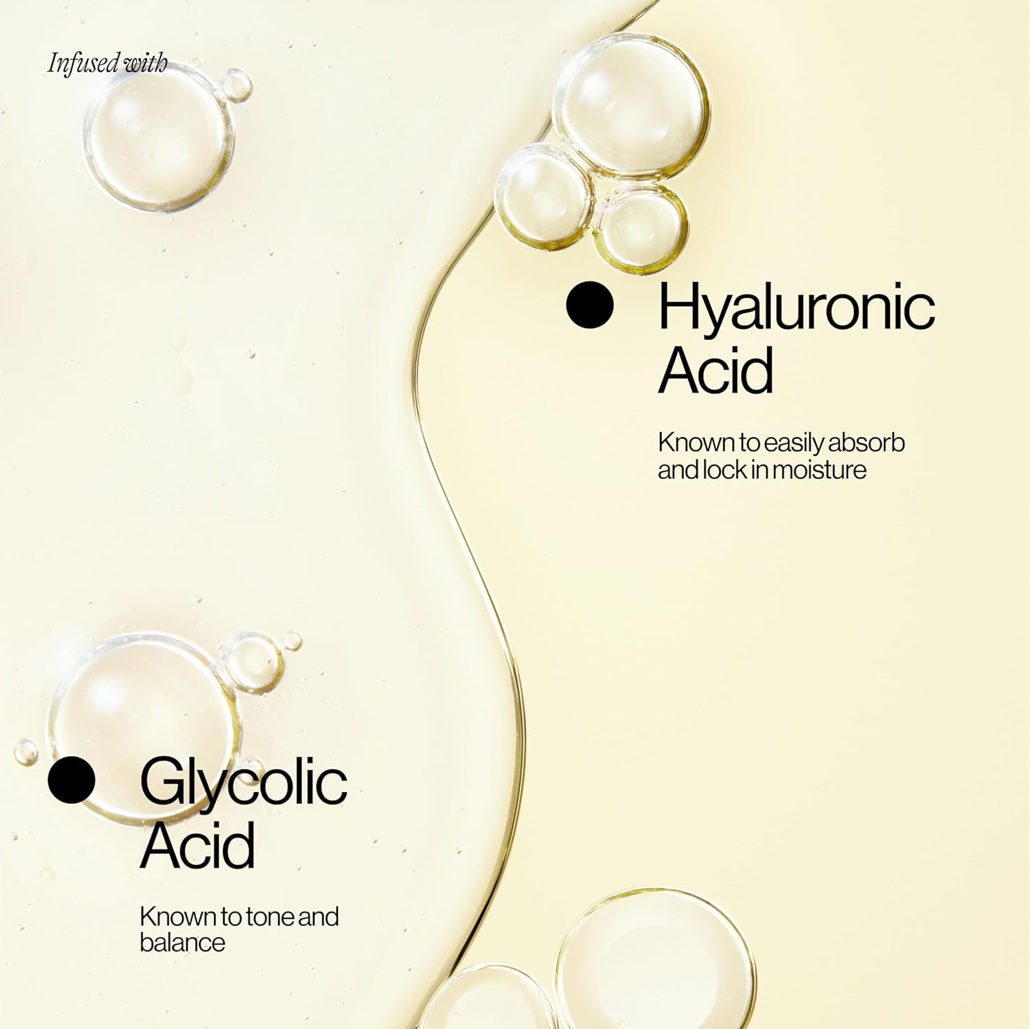 Key Ingredients: Infused with hyaluronic acid, known to lock in moisture, and glycolic acid, known to tone and balance