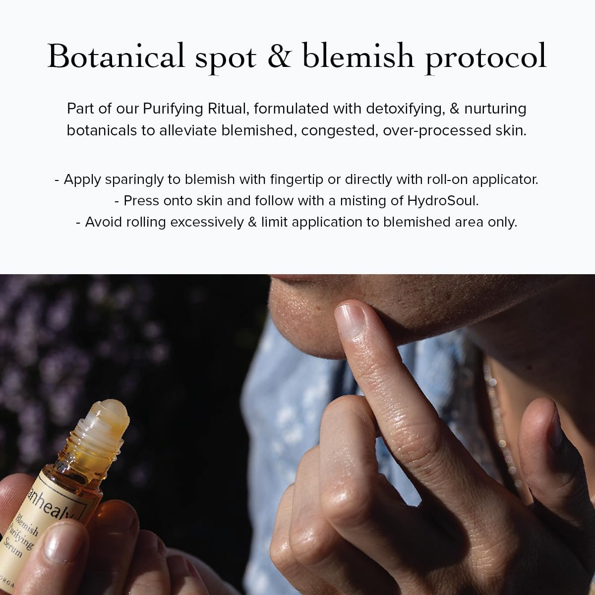 BLEMISH CONTROL - The Blemish Purifying skin serum works to harmonize sebum production without drying our irritating sensitive skin. Apply it after your hydrating serum, and before a clay mask or moisturizer