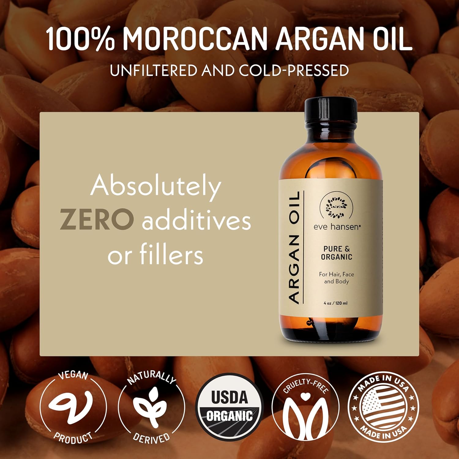 Eve Hansen Argan Oil (4Oz), Pure Carrier Oil For Hair, Skin And Nails, Deep Hydrator, Anti-Age, Sulfate, Paraben, Phthalate Free