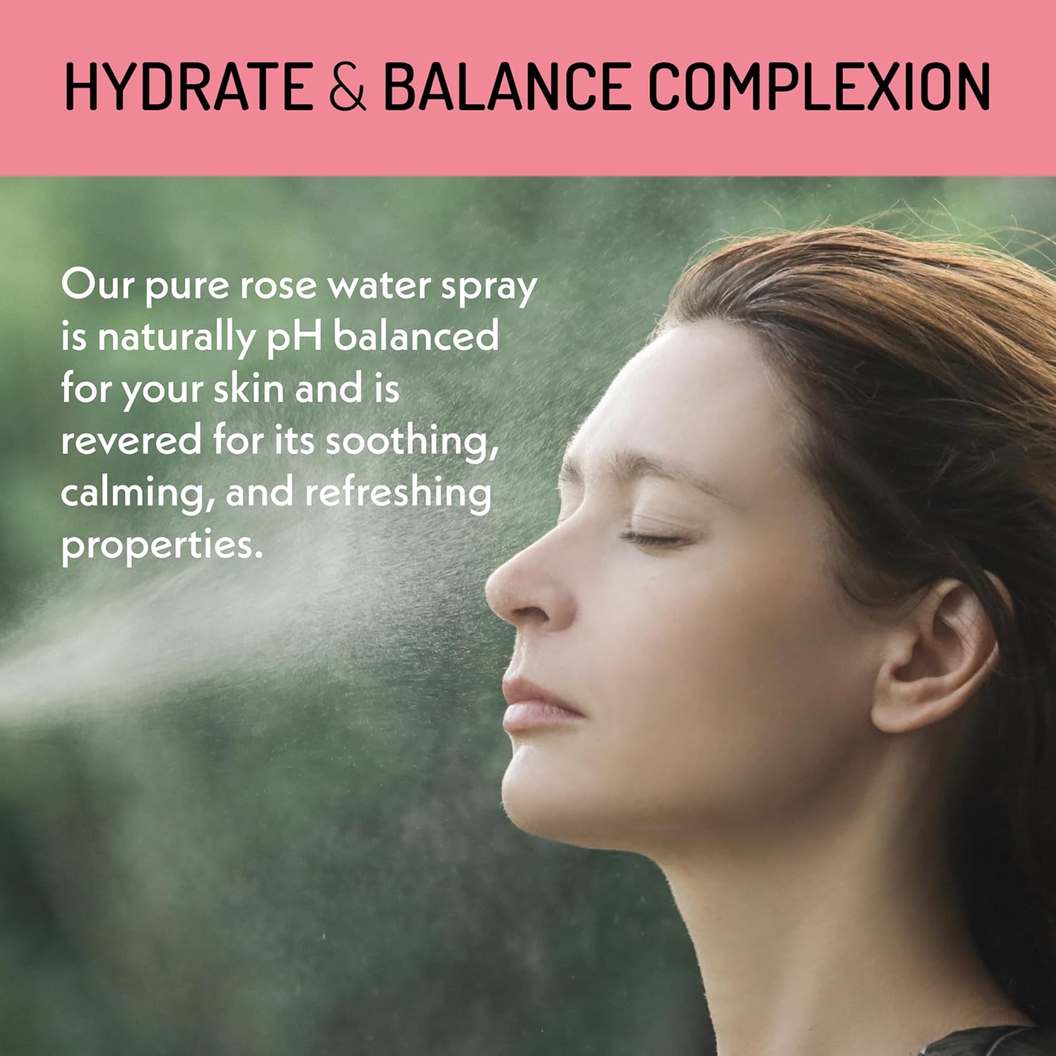 Calm & Hydrate - Rejuvenating Moroccan rosewater spray is a balancing face mist to revitalize skin. Use as a face toner spray, face cleanser spray, makeup finishing spray, pore reducer, makeup setting spray, natural make up remover, and as a Soothing skin toner to calm irritation