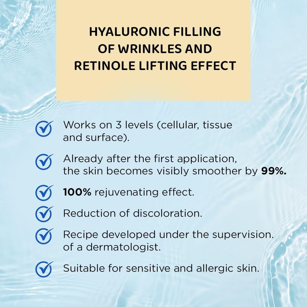 Eveline Cosmetics Biohyaluron 3Xretinol System β Multirepair Anti-Wrinkle Serum | Night Care | Vegan Formula