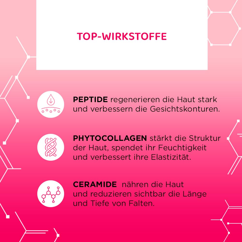 Visibly smooths skin, reduces wrinkles, and improves facial contou