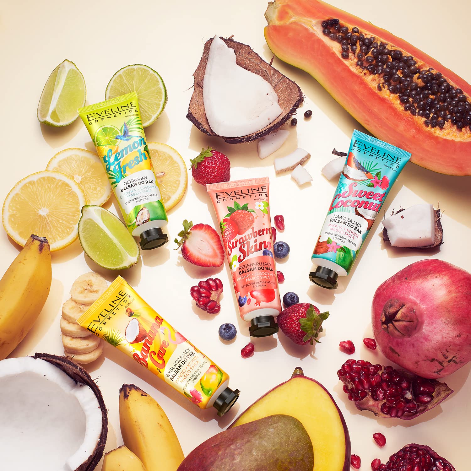 Strawberry Skin Hand Balm with creamy formula that restores the comfort of rough, irritated and damaged hand skin, while deeply regenerating and moisturizing. The intensely caring composition of the balm acts like a vitamin repair compress, soothing the skin