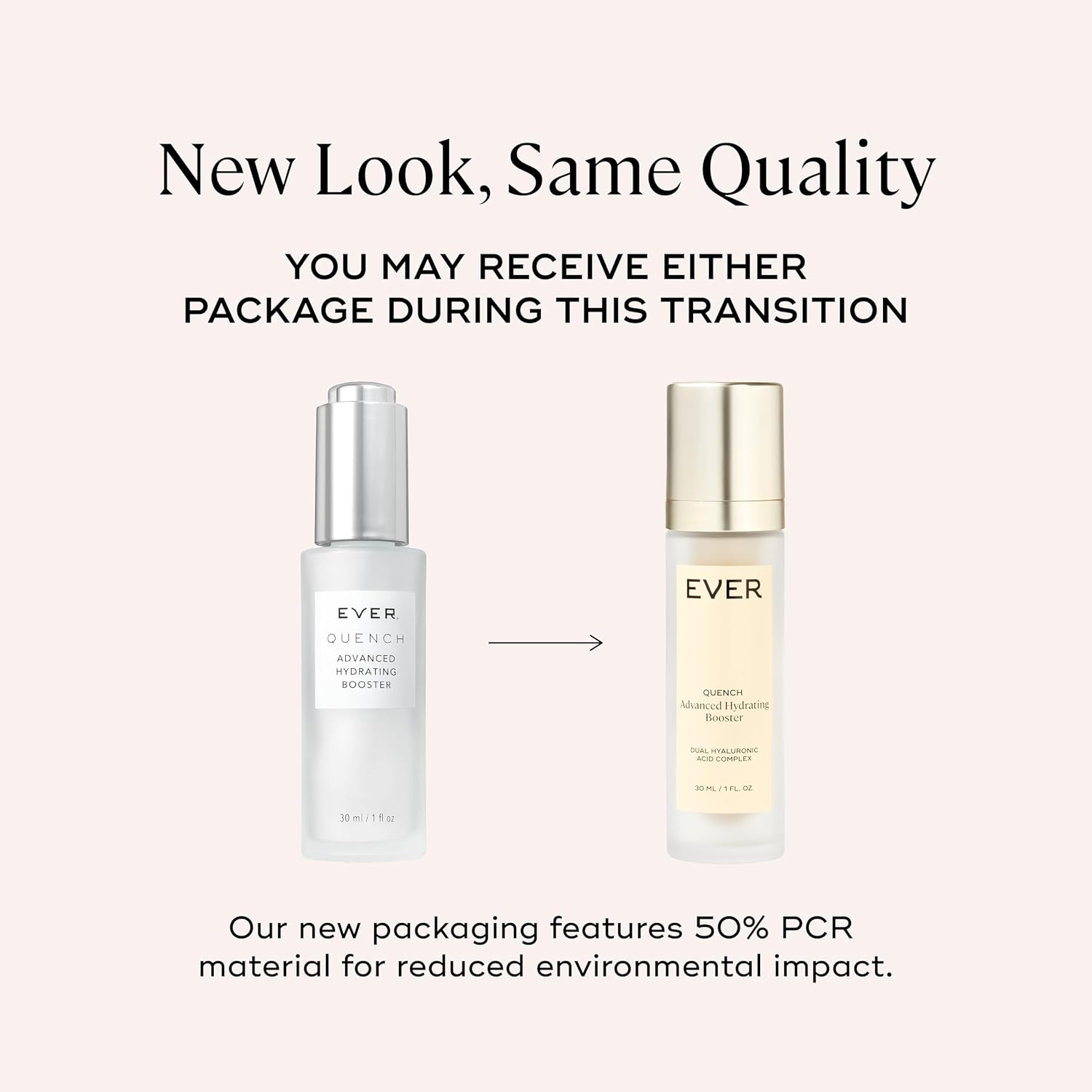About this item OIL-FREE, LIGHTWEIGHT FORMULA: This water-based, hydrating hyaluronic acid face serum features Citrulline, Aloe Barbadensis Leaf Juice, and Red Algae to lock in moisture, soften skin, and help reduce hydration loss. MADE TO NOURISH: Hydrating face serum designed to relieve patchy skin, our advanced, combined formula of hyaluronic acid, glycerin and niacinamide deeply moisturizes and nourishes skin to improve skin texture, leaving you with softer, smoother skin. DOUBLE-PACKED HYALURONIC ACID SERUM FOR FACE: Our specially designed, two-weight Hyaluronic Acid fluid plumps fine lines and reduces the appearance of wrinkles while locking in essential hydration. PERFECT FOR LAYERING: Lightweight and fast-absorbing, our Quench Advanced Hydrating Booster is perfect for layering with other serums and moisturizers for a customized hydration boost CLEAN BEAUTY - All our products are free of parabens, sulfates, phthalates, propylene glycol, synthetic fragrances and colors, and chemical sunscreens. The entire brand is Leaping Bunny Certifiedāthe gold standard in cruelty-free certification. EVER sources all ingredients from ethical, trusted suppliers who are held to the highest standards of production, while disclosing every ingredient. See more product details,OIL-FREE, LIGHTWEIGHT FORMULA: This water-based, hydrating hyaluronic acid face serum features Citrulline, Aloe Barbadensis Leaf Juice, and Red Algae to lock in moisture, soften skin, and help reduce hydration loss,MADE TO NOURISH: Hydrating face serum designed to relieve patchy skin, our advanced, combined formula of hyaluronic acid, glycerin and niacinamide deeply moisturizes and nourishes skin to improve skin texture, leaving you with softer, smoother skin,DOUBLE-PACKED HYALURONIC ACID SERUM FOR FACE: Our specially designed, two-weight Hyaluronic Acid fluid plumps fine lines and reduces the appearance of wrinkles while locking in essential hydration,PERFECT FOR LAYERING: Lightweight and fast-absorbing, our Quench Advanced Hydrating Booster is perfect for layering with other serums and moisturizers for a customized hydration boost,CLEAN BEAUTY - All our products are free of parabens, sulfates, phthalates, propylene glycol, synthetic fragrances and colors, and chemical sunscreens. The entire brand is Leaping Bunny Certifiedāthe gold standard in cruelty-free certification. EVER sources all ingredients from ethical, trusted suppliers who are held to the highest standards of production, while disclosing every ingredient