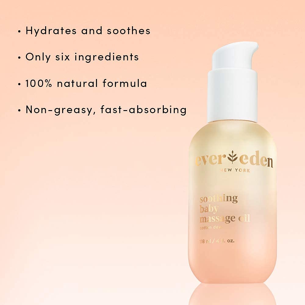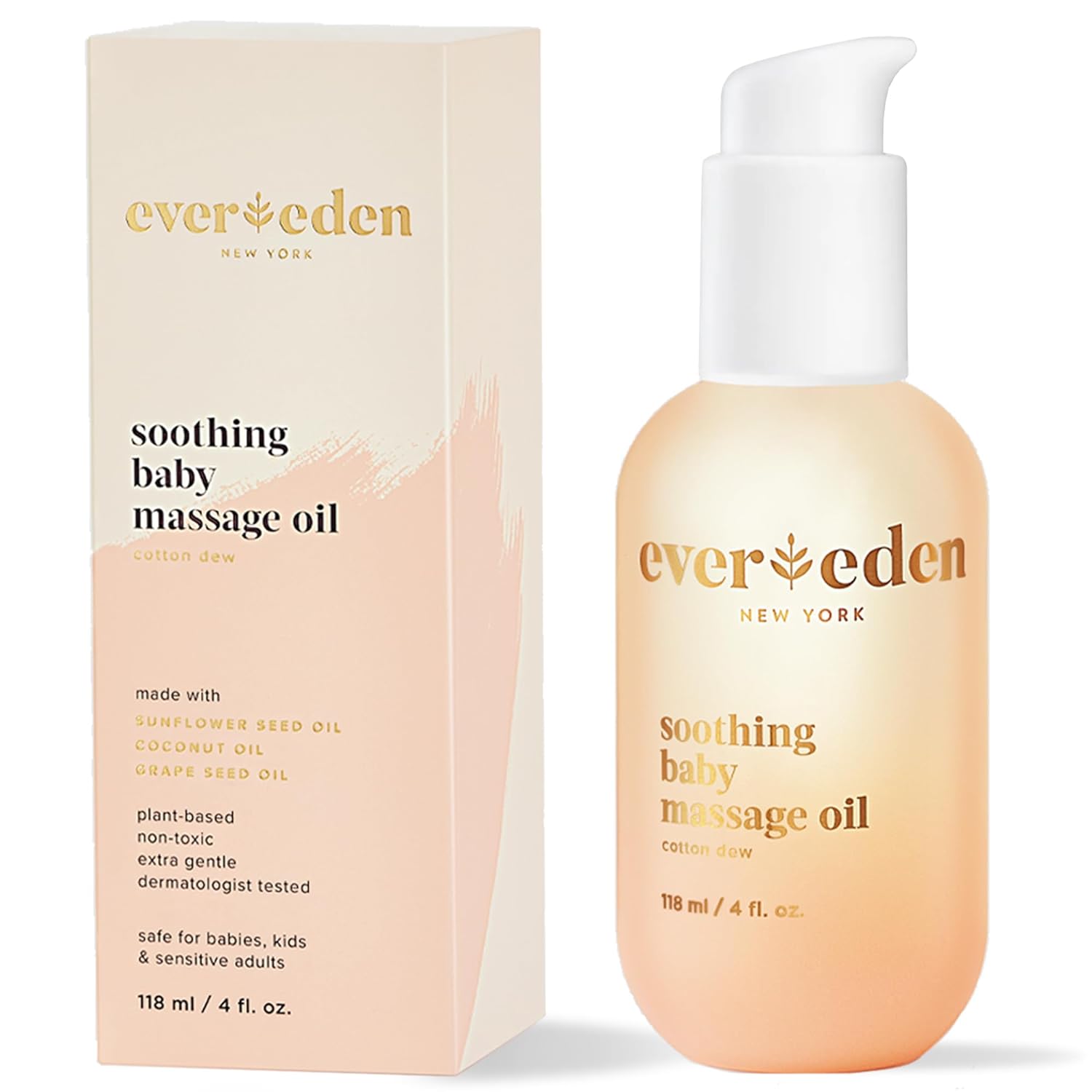 Evereden Soothing Baby Massage Oil: Cotton Dew 4 fl oz. | Non-toxic and Clean Baby Care | Plant-based and Organic Ingredients | All Natural Fragrance