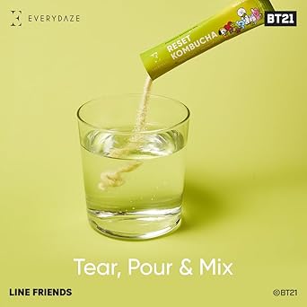 Everydaze Reset Kombucha Everydaze Reset Kombucha Is A Beverage Powder Mix That Instantly Makes A Gut-Supporting Fermented Tea Beverage With A Quick Mix Of Water. Each Under 21 Calories Per Serving, This Refreshing Fruit-Forward Kombucha Is A Great Alternative To Sugary Soda And Juices. Enhance Your Beverage Experience With This Satisfying Refresher That Not Only Quenches The Thirst But Supports Digestive Health With Prebiotics And Probiotics. Drink To Wellness Multi-Tasking: Delicious Refresher, Adds Antioxidants & Pre+Probiotics, Supports Digestion 10 Billion Cfu Plant-Based Probiotics Per Serving Maximized Performance With Coating Technology To Keep Probiotics Intact Highlights A Boost Of Prebiotics And Probiotics From Reset Kombucha Can Help Promote Metabolism And Maintain A Healthy Microbiome. Fructooligosaccharide Is The Prebiotic I.E. Dietary Fiber In The Formulation That Adds To The Sweetness Alongside Digestion-Resistant Maltodextrin To Act As A Feed To Our Limosilactobacillus Fermentum Probiotic Strain. This Vegan Probiotic Strain Is From Kimchi Made With Cabbage That Was Cultured With Soy-Based Ingredients. These Pre+Probiotics Combination Works In Sync To Proactively Regulate The Balance Of Bacteria In The Gut. Kombucha Reimagined: Indulgent Flavor Commonly, Kombucha Gives Off An Unpleasant Aroma And Tart, Vinegar-Like Flavor Finish From The Process Of Formulation. Instead Of Ordinary Sour Kombucha, Reset Kombucha Has Been Meticulously Formulated To Leave Out Unpleasant Notes With No Added Sugar. Probiotics Each Stick Packs 10 Billion Cfu Plant-Based Probiotics Per Serving. Special Patented Technology To Protect The Probiotics To Stay Intact And Last Throughout The Digestive Tract. The Protective Layer Creates A Barrier Around The Probiotics To Stand Up To Very Acidic Environments Of The Stomach Tract. Since Most Of The Work By These Good Bacteria Is Completed Within The Intestines, Ensuring These Probiotics Survive And Are Slowly Released At The Right Time, Provides The Chance For Maximized Performance For Digestive Regularity Where It Is Needed The Most. Homemade Kombucha Kombucha Needs Strict Production Conditions And Good Quality Control Due To The Involved Bacteria Variables Of Temperature, Water, And Storage. Formulation For Specialty Diets Stay On Top Of Your Health Goals With A Simple And Fun Beverage Without Concerns As Everydaze Reset Kombucha Was Formulated To Be Vegan, Low Calories, Non-Alcoholic, Minimally Caffeinated, And Sweetened With Natural Ingredients. Bt21 Green Grape Ingredients Erythritol (Sweetener), Citric Acid (Flavoring Agent), Dl-Malic Acid (Flavoring Agent), Sodium Bicarbonate (Stabilizer), Kombucha Concentrate Powder, Digestion-Resistant Maltodextrin (Bulking Agent), Shine Muscat Mixed Concentrate (Flavoring Agent), Fructooligosaccharide (Dietary Fiber), Shine Muscat Flavor (Flavoring Agent), Green Grape Flavor (Flavoring Agent), Organic Barley (Hordeum Vulgare) Sprout Powder, Vitamin B2 (Riboflavin), Steviol Glycosides (Sweetener), Limosilactobacillus Fermentum Contains: Soy Bean Caution Consult Your Doctor Before Adding To Your Diet If You Are Pregnant Or Breastfeeding, Or Have A Medical Condition And Are Taking Any Prescription Medications. Store In A Cool, Dry Place Away From Excessive Heat And Direct Sunlight. Directions Tear The Packaging To Add The Powdered Mix To A Cup Of 8 Oz. Of Water And Thoroughly Mix. Measurement Of Water Content Can Be Adjusted To Personal Preferences. Best Served With Chilled Water. Enjoy With Some Ice! We Suggest Consuming The Kombucha Alongside Or Following A Meal To Support Digestion And Whenever You Need To Hydrate. Avoid Consuming On An Empty Stomach In The Morning. It Is Normal To See Some Colorful Sediments As You Mix. Only Natural Coloring Ingredients Were Used. The Mixtures May Vary By Ratio Among The Flavors, And Use The Following As Coloring: Redness From Hibiscus, Green From Barley Sprouts, Brown From Black Tea, And Yellow From Vitamin B. Legal Disclaimer Statements Regarding Dietary Supplements Have Not Been Evaluated By The Fda And Are Not Intended To Diagnose, Treat, Cure, Or Prevent Any Disease Or Health Condition