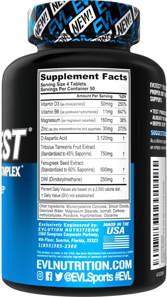 EVL Testosterone Booster for Men - Post Workout Recovery Testosterone Support Supplement for Men with DIM Plus D Aspartic Acid and Fenugreek and Tribulus - EVLTest for Men Post Workout Supplement