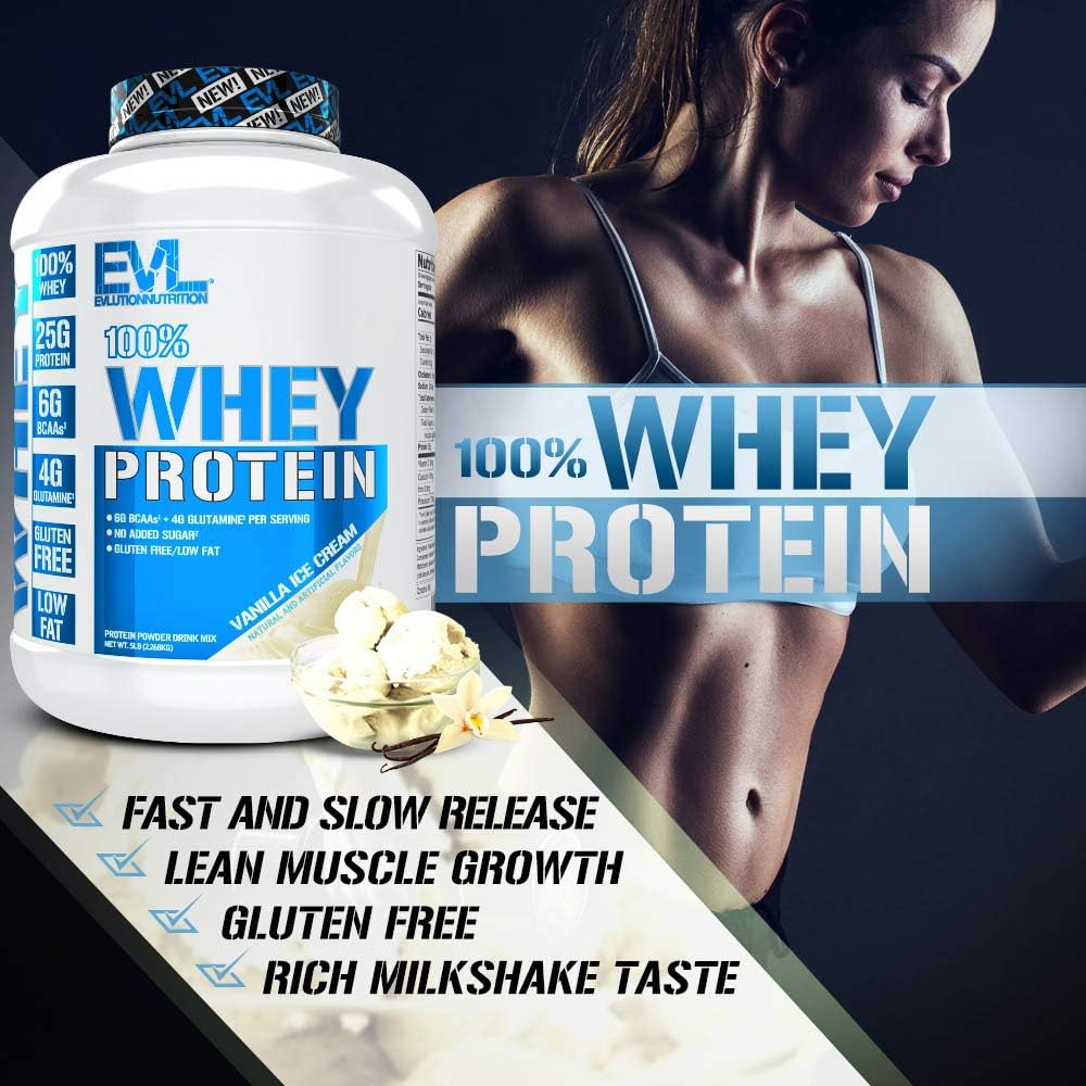 About this item Pure Protein Power β Evlution Nutrition 100% Whey is engineered to be a protein powerhouse. Itβs packed with 25 grams of easy-to-digest and fast absorbing protein. Just add 1 scoop to your smoothies for an added burst of potent protein in your daily diet. Rapid Absorption β Our 100% Whey is crafted to enhance your workouts! Each serving is rapidly digested by your body, fast-tracking key aminos straight to your muscles, enhancing muscle growth and recovery. Build & Recover Faster β Work out longer and accelerate your muscle recovery! Our delicious 100% whey protein is designed to help support the muscle recovery process and help you build lean muscle mass with 4 grams of Glutamine and 6 grams of premium BCAAs per serving. Best-In-Class Quality β Our premium whey protein powder is proudly made in cGMP facilities with only the best ingredients and the richest flavor. See more product details,Pure Protein Power β Evlution Nutrition 100% Whey is engineered to be a protein powerhouse. Itβs packed with 25 grams of easy-to-digest and fast absorbing protein. Just add 1 scoop to your smoothies for an added burst of potent protein in your daily diet,Rapid Absorption β Our 100% Whey is crafted to enhance your workouts! Each serving is rapidly digested by your body, fast-tracking key aminos straight to your muscles, enhancing muscle growth and recovery,Build & Recover Faster β Work out longer and accelerate your muscle recovery! Our delicious 100% whey protein is designed to help support the muscle recovery process and help you build lean muscle mass with 4 grams of Glutamine and 6 grams of premium BCAAs per serving,Best-In-Class Quality β Our premium whey protein powder is proudly made in cGMP facilities with only the best ingredients and the richest flavor