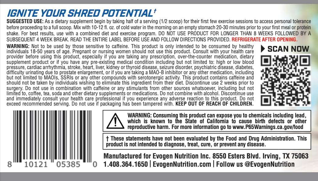 About this item ELITE THERMOGENIC FAT BURNER – Evoburn’s advanced thermogenic powder formula features MitoBurn, InnoSlim, and BioPerine to enhance thermogenesis and calorie burn. This potent blend is designed to help you achieve a lean physique while preserving muscle mass. ENERGY AND FOCUS BOOST – Packed with caffeine, L-Tyrosine, and cocoa extract, Evoburn provides clean energy and mental clarity to keep you motivated and focused throughout intense workouts and daily activities. APPETITE CONTROL SUPPORT – Formulated with proven ingredients, Evoburn helps curb cravings and supports portion control, making it an effective companion for your weight management journey. ADVANCED METABOLISM SUPPORT – With thermogenic enhancers like Yohimbe and BioPerine, this fat burner optimizes your metabolic rate to maximize calorie burn and help you achieve your fitness goals faster. DESIGNED BY THE PRO CREATOR – Developed by Hany Rambod, 25X Olympia-winning coach, Evoburn combines cutting-edge science with premium ingredients to help you burn fat, enhance focus, and perform at your peak. Due to Amazon’s health and safety policies, returns are not permitted for this product. If you experience any issues, please contact us directly, and we’ll be happy to help. See more product details,ELITE THERMOGENIC FAT BURNER – Evoburn’s advanced thermogenic powder formula features MitoBurn, InnoSlim, and BioPerine to enhance thermogenesis and calorie burn. This potent blend is designed to help you achieve a lean physique while preserving muscle mass,ENERGY AND FOCUS BOOST – Packed with caffeine, L-Tyrosine, and cocoa extract, Evoburn provides clean energy and mental clarity to keep you motivated and focused throughout intense workouts and daily activities,APPETITE CONTROL SUPPORT – Formulated with proven ingredients, Evoburn helps curb cravings and supports portion control, making it an effective companion for your weight management journey,ADVANCED METABOLISM SUPPORT – With thermogenic enhancers like Yohimbe and BioPerine, this fat burner optimizes your metabolic rate to maximize calorie burn and help you achieve your fitness goals faster,DESIGNED BY THE PRO CREATOR – Developed by Hany Rambod, 25X Olympia-winning coach, Evoburn combines cutting-edge science with premium ingredients to help you burn fat, enhance focus, and perform at your peak,Due to Amazon’s health and safety policies, returns are not permitted for this product. If you experience any issues, please contact us directly, and we’ll be happy to help