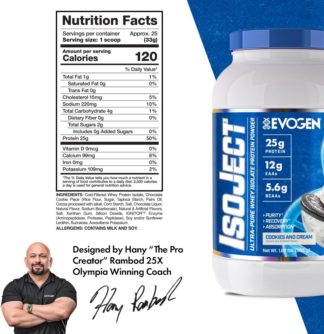 About this item ULTRA-PURE WHEY PROTEIN ISOLATE – Isoject’s triple cold-filtration process delivers a premium whey protein isolate that ensures maximum purity, rapid absorption, and easy digestion to support muscle growth and recovery. IGNITOR DIGESTIVE ENZYMES FOR ABSORPTION – Isoject includes the advanced Ignitor enzyme blend to enhance protein breakdown and optimize amino acid release, including BCAAs and EAAs, for superior results with every scoop. ALL-DAY ANABOLIC SUPPORT – Packed with essential nutrients, Isoject provides Branched Chain Amino Acids (BCAAs) and Essential Amino Acids (EAAs) to fuel recovery, muscle growth, and overall performance for athletes at any level. CLEAN NUTRITION FOR OPTIMAL RESULTS – Free from fillers and unnecessary additives, Isoject is a clean whey protein powder option, perfect for shakes, smoothies, or recipes, offering a delicious and smooth texture in every mix. DESIGNED BY THE PRO CREATOR – Developed by Hany Rambod, 25X Olympia-winning coach, Isoject is crafted using cutting-edge science to maximize recovery and gains, so you can train like a champion. See more product details,ULTRA-PURE WHEY PROTEIN ISOLATE – Isoject’s triple cold-filtration process delivers a premium whey protein isolate that ensures maximum purity, rapid absorption, and easy digestion to support muscle growth and recovery,IGNITOR DIGESTIVE ENZYMES FOR ABSORPTION – Isoject includes the advanced Ignitor enzyme blend to enhance protein breakdown and optimize amino acid release, including BCAAs and EAAs, for superior results with every scoop,ALL-DAY ANABOLIC SUPPORT – Packed with essential nutrients, Isoject provides Branched Chain Amino Acids (BCAAs) and Essential Amino Acids (EAAs) to fuel recovery, muscle growth, and overall performance for athletes at any level,CLEAN NUTRITION FOR OPTIMAL RESULTS – Free from fillers and unnecessary additives, Isoject is a clean whey protein powder option, perfect for shakes, smoothies, or recipes, offering a delicious and smooth texture in every mix,DESIGNED BY THE PRO CREATOR – Developed by Hany Rambod, 25X Olympia-winning coach, Isoject is crafted using cutting-edge science to maximize recovery and gains, so you can train like a champion