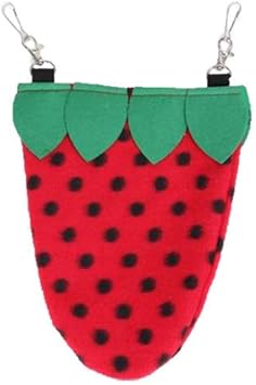 Exotic Nutrition's Strawberry Nest Pouch is made of warm polar fleece material with an easy-access opening. SIZE: Approximately 10" tall x 7.5" wide FEATURES : ? COMFORTABLE - Made of warm polar fleece material ? CONVENIENT - Easy-access opening. ? EASY - Hangs from side or top of any cage with heavy duty clips (hardware included). ? QUALITY - Hand-sewn with inside seams and 100% machine washable. ? HEALTHY - Proper nesting material can help reduce stress levels and increase the quality of sleep your pet is getting. ? NECESSARY - Provide at least 1-2 nest pouches inside the cage at all times. ? VERSATILE - Designed for sugar gliders, squirrels, marmosets, and other small mammals Always supervise pets during use. Thoroughly inspect accessories on a daily basis for loose threads or other hazards. Wipe product clean with a soft, damp cloth or machine-wash as needed. Remove hardware clips during washing