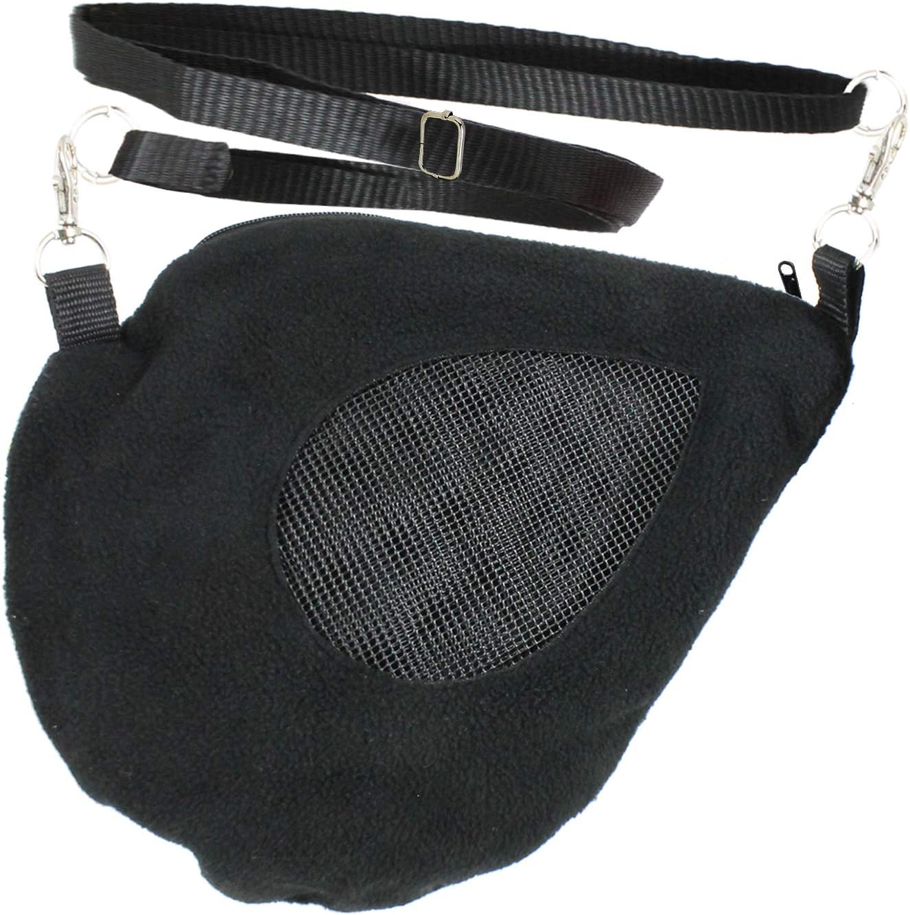 Exotic Nutrition Teardrop Carry Pouch (Black) - Small Animal Fleece Bonding Pouch - For Sugar Gliders, Hamsters, Gerbils, Mice, Degus, Squirrels & Other Small Pets