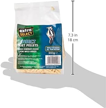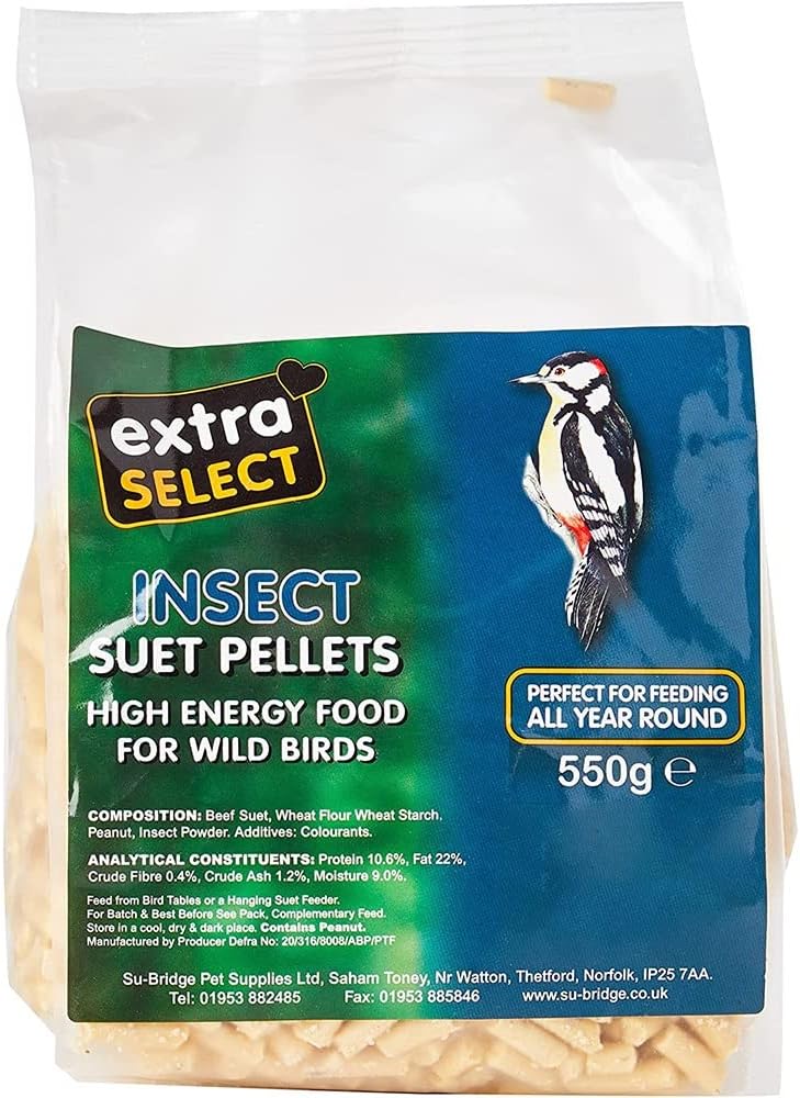 Extra Select Insect High Energy Suet Pellets Wild Bird Food - Protein, Fat Rich Year-Round Feeding - 550 G08Wb045