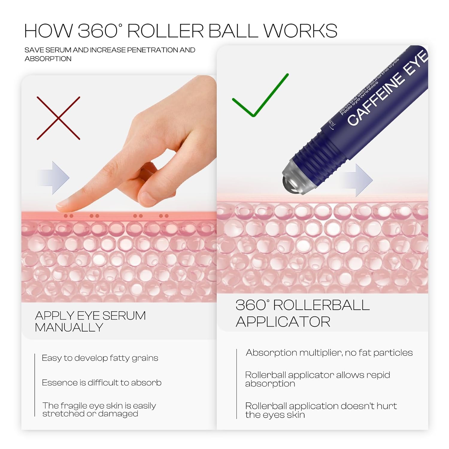Eye 360°Roller for Puffy Eyes: Our eye cream features a cooling roller that smoothly applies the serum, instantly soothing tired eyes and reducing puffiness