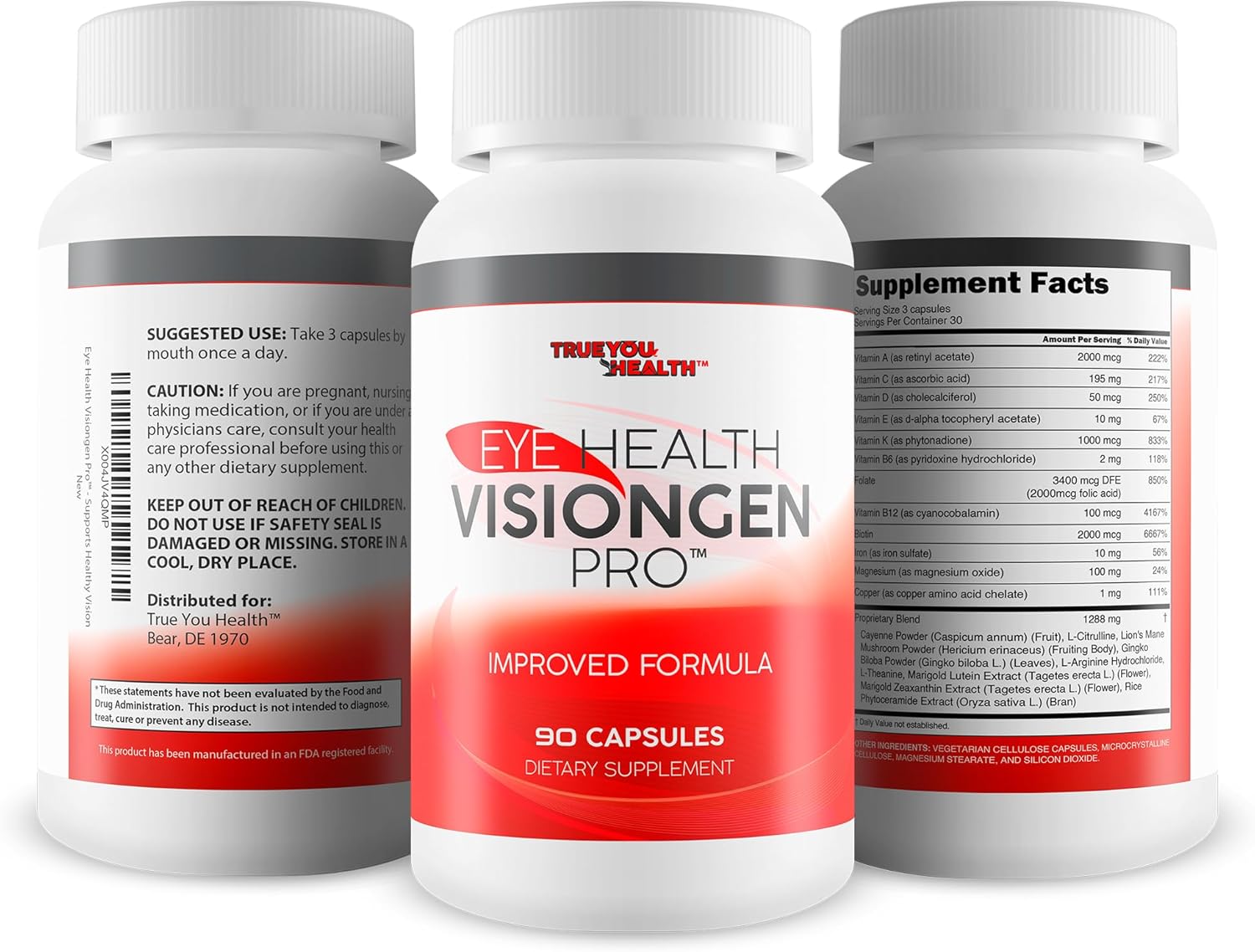 Eye Health Visiongen Pro - Improved Formula - Our Best Lutein Supplements For Eyes - Natural Vision Pills For Eyes - Our Best Eye Pills For Vision Support - Vision Vitamin D3 & K2 Capsules Sight Pills