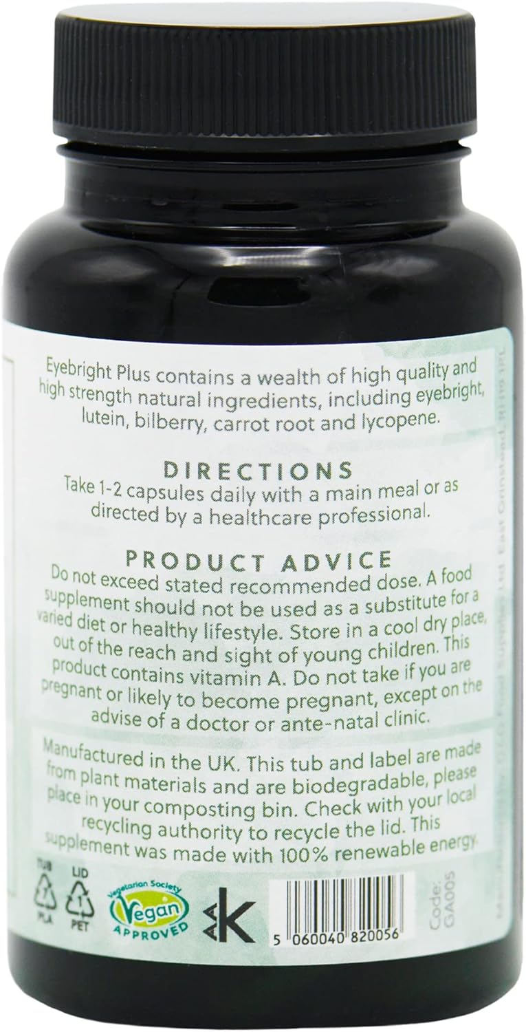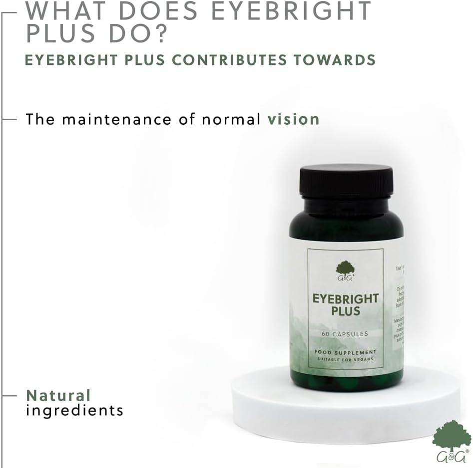 Eyebright Plus | Eyebright, Lutein, Astaxanthin, Bilberry, Lycopene Supplement | 60 Vegan Capsules | G&G Vitamins