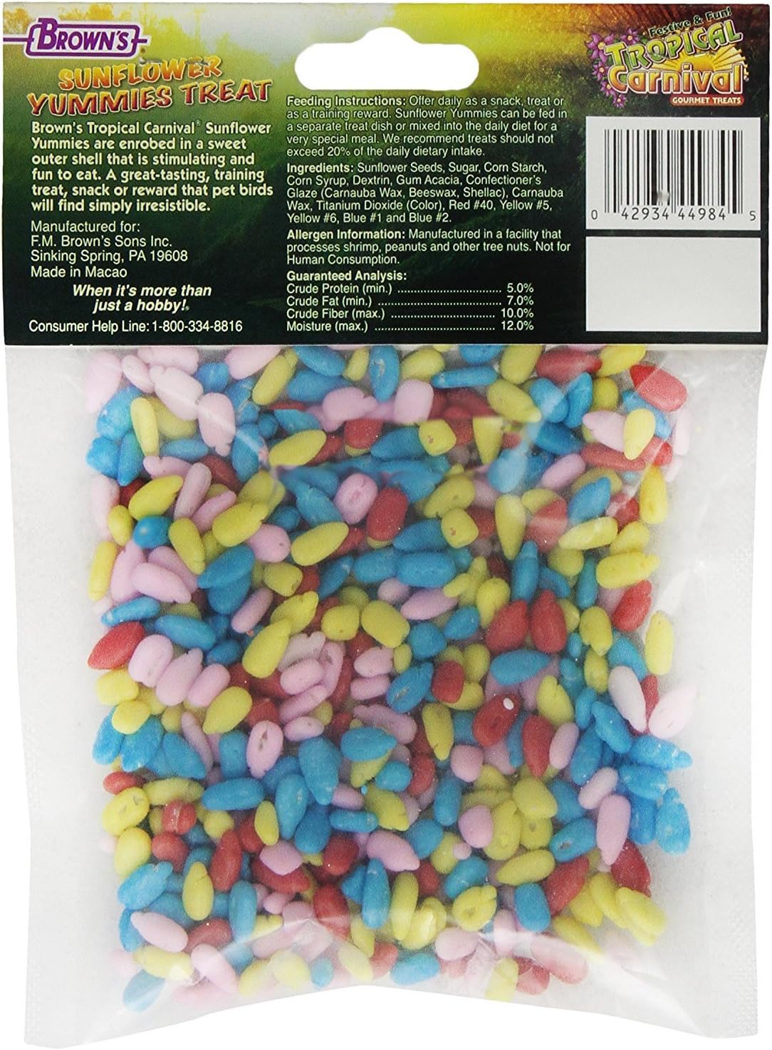 BrownâS Tropical Carnival Sunflower Yummies Are Enrobed In A Sweet Outer Shell ThatâS Stimulating And Fun To Eat. Sunflower Yummies Are A Great-Tasting Training Treat, Snack Or Reward That Pet Birds Will Find Simply Irresistible