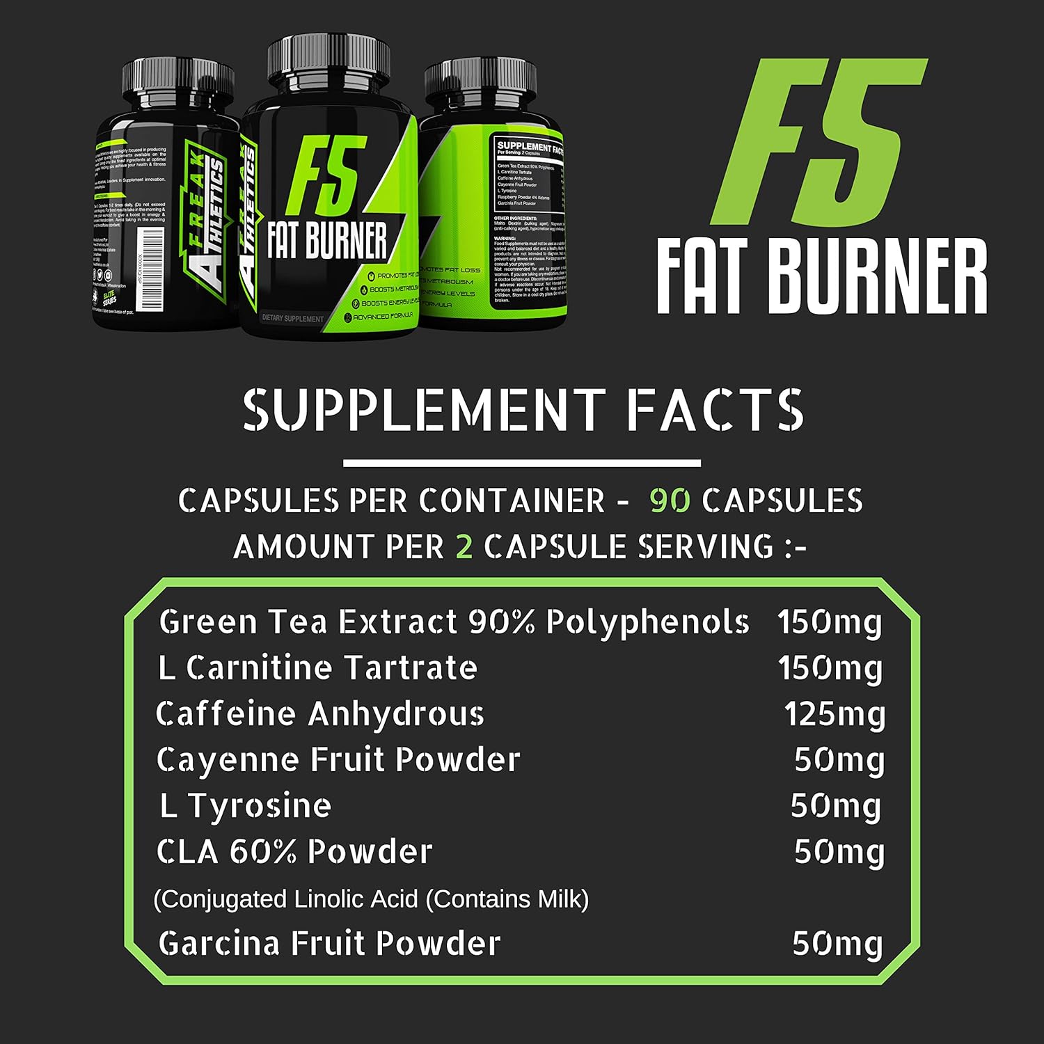 2 > OPTIMAL FORMULA - Using only the highest quality of Ingredients F5 combines Green Tea, L-Carnitine, Cayenne, Caffeine, L Tyrosine, CLA Powder, Garcinia, These Key Ingredients make a powerful and potent supplement to support and enhance your lifestyle goals
