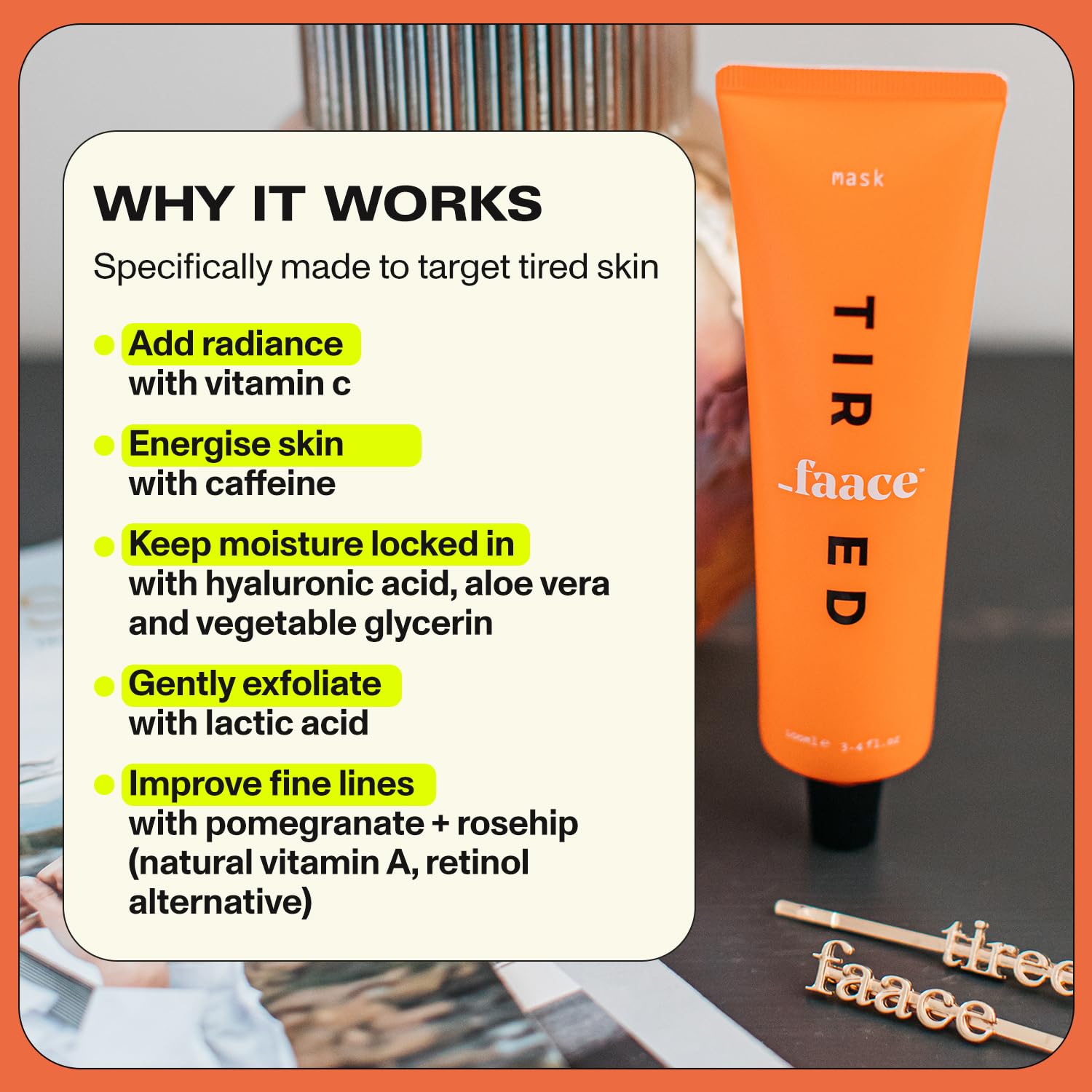 Faace Tired Face Mask Beauty - Vegan Daily Face Gel For All Skin Types - Vitamin C, Hyaluronic Acid, Aloe Vera Plant And Rosehip Oil - Cruelty-Free & Organic Skincare - 40 Uses - 100 Ml