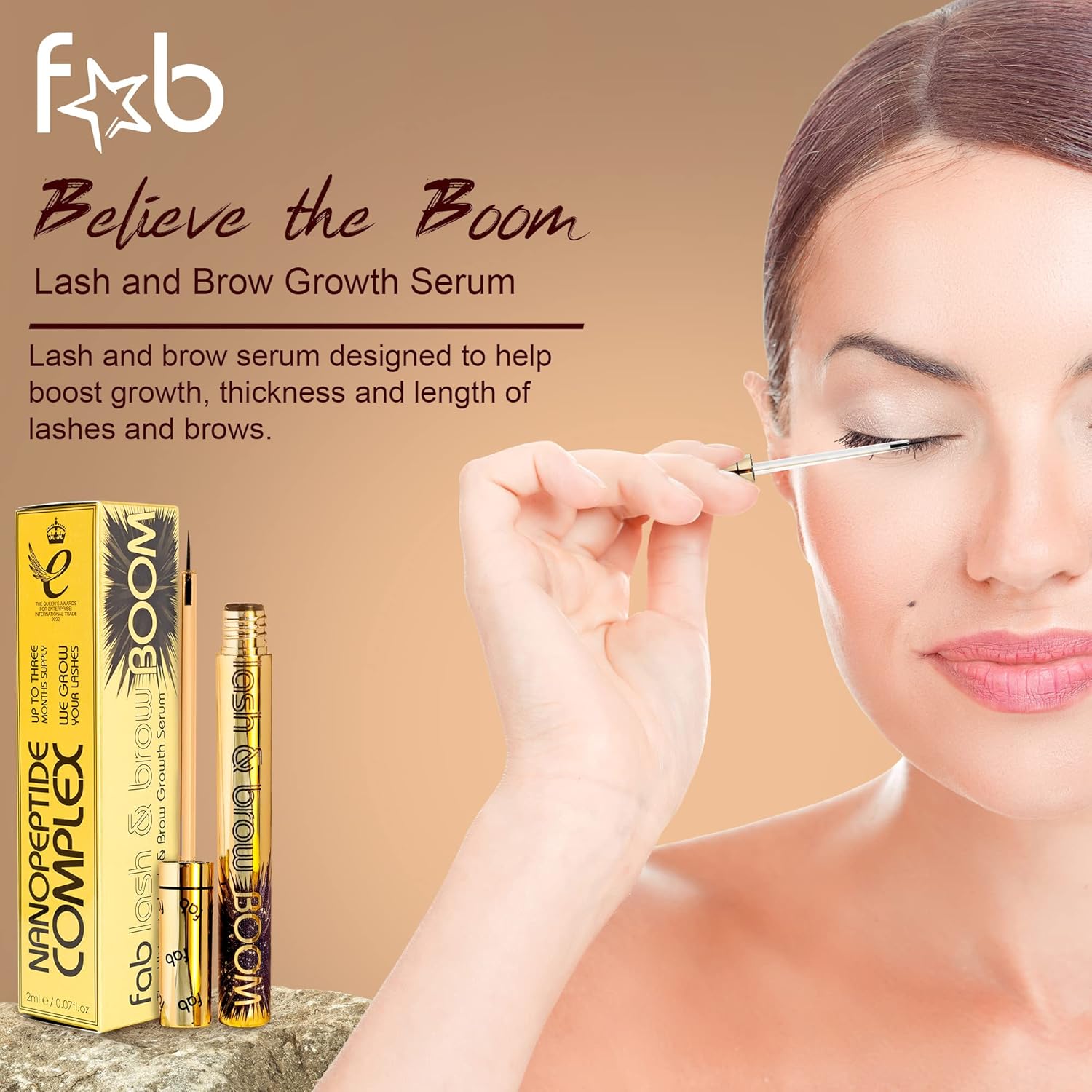 Fab Lash And Brow Boom - The Ultimate Lash And Brow Growth Serum - Lash Serum For Thicker, Longer & Fuller Lashes And Brows - Infused With Castor Oil, Biotin & Eyelash Primer For Healthy Hair Growth