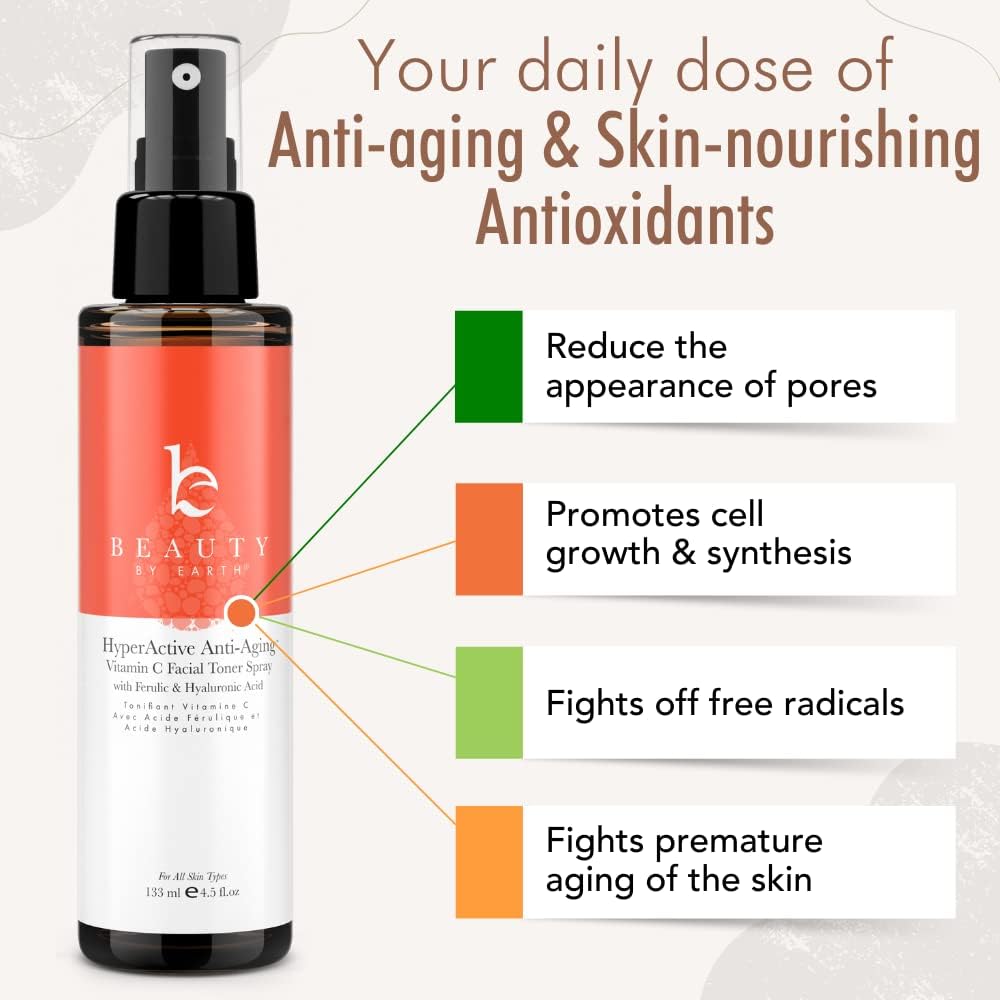 GREAT FOR ALL SKIN TYPES: Works great as an acne toner for sensitive skin, or a toner for acne prone skin. Our facial toner for aging skin helps fight fine lines and wrinkles and even out dark spots. It is also a great toner for dry skinANTI AGING SKINCARE BENEFITS: Face spray mist hydrating is packed with moisturizing & anti aging ingredients. Great for evening out skin tone, is a pore reducer and minimizer and is a great facial mist spray and face toner for women anti agingMADE IN USA WITH ORGANIC VEGAN INGREDIENTS: Gently formulated with organic aloe vera & organic witch hazel & hyaluronic acid. It's a great face mist hydrating spray, witch hazel spray and an alcohol free toner for face with alcohol free witch hazelFace Toner - Vitamin C Facial Spray, Facial Toner & Skin Toner, Aloe & Witch Hazel Toner for Face Spray, Face Toner for Women & Men, Hydrating Toner for Oily Skin & Dry Skin, Light Astringent for Face