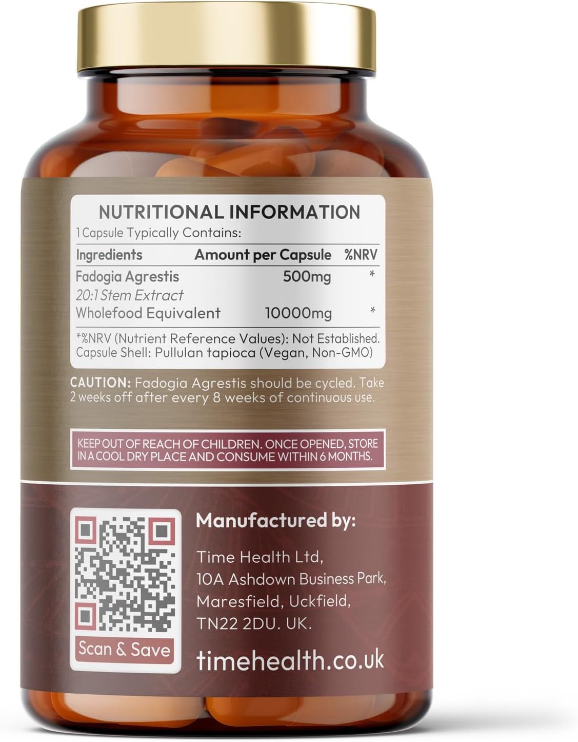 Fadogia Agrestis - High Strength - 2X Purity 20:1 Extract - 10,000Mg Equivalent - 60 X 500Mg Capsules - Lean Muscle Growth - Muscle Recovery - Athletic Performance - Uk Made - Gmp - No Additives
