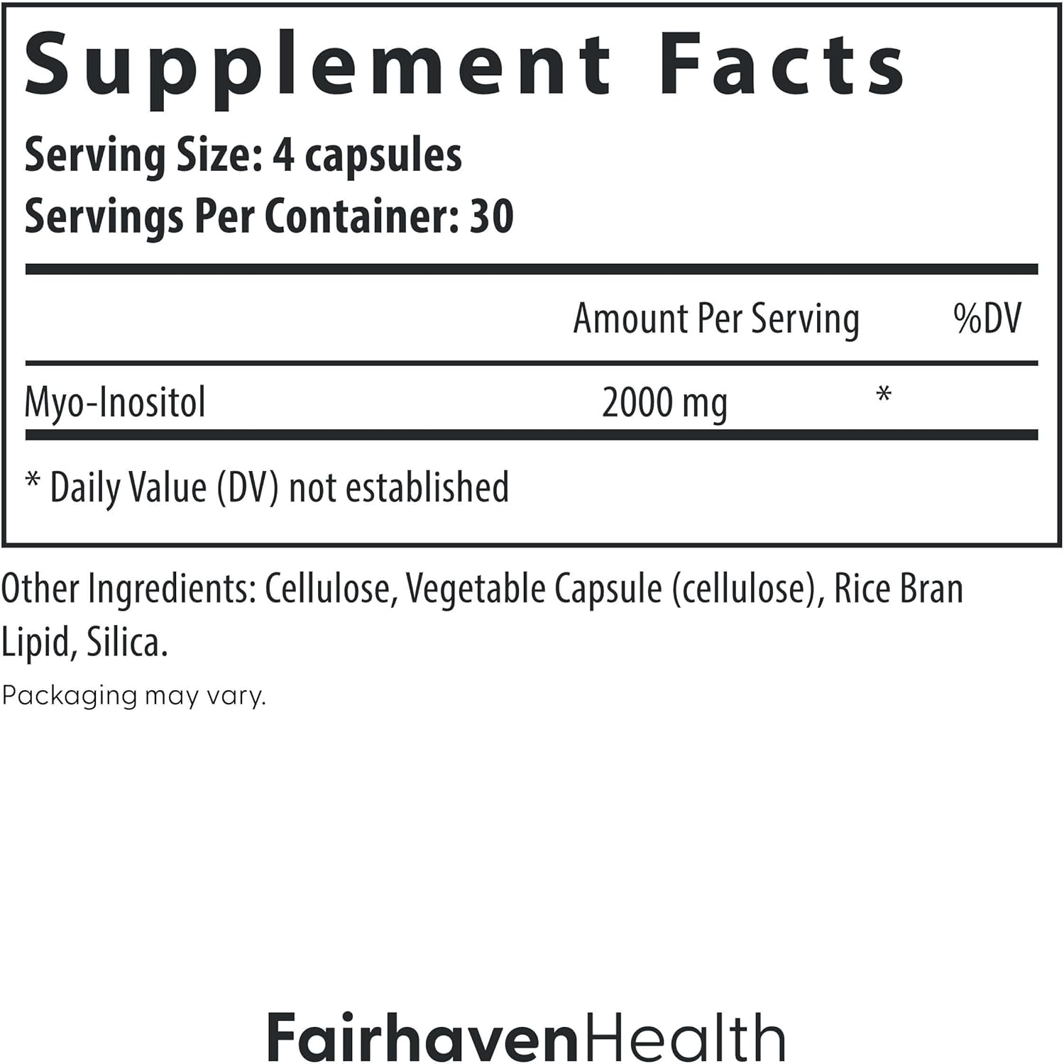 Fairhaven Health Myo-Inositol Supplement For Women And Men | Vitamin B8 2000Mg | Vegan Inositol Powder Capsules | Gluten, Dairy And Soy Free | 120 Inositol Capsules