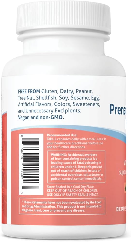 Fairhaven Health Prenatal Multivitamin Essentials | Prenatal Vitamins + Dha, Choline, Myo-Inositol | Supports Healthy Pregnancy & Fetal Brain Development | Mint Essence To Deter Nausea | 60 Capsules