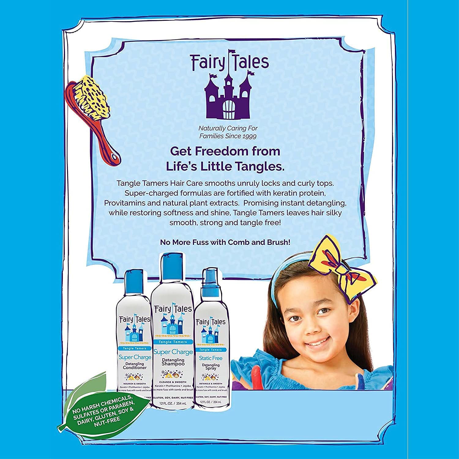 ABOUT THE PRODUCT: 1 > Fairy Tales detangler shampoo is a detangling and smoothing solution for unruly knots & curly tops. Use together with our Fairy Tales Detangler Spray for best results. Transforms hair to soft, silky perfection 2 > Fairy Tales Tangle Tamer shampoo for kids and is enriched with Keratin and Vitamin B. These ingredients strengthen, smooth and detangle all hair types, and is great for the whole family! 3 > Tangle Tamer is a Fairy Tales Shampoo for kids that calms, eliminates frizz and moisturizes with Panthenol and Vitamin EFairy Tales Tangle Tamer Super Charge Detangling Shampoo for Kids - Paraben Free, Sulfate Free, Gluten Free, Nut Free - 32 oz (2 Pack)