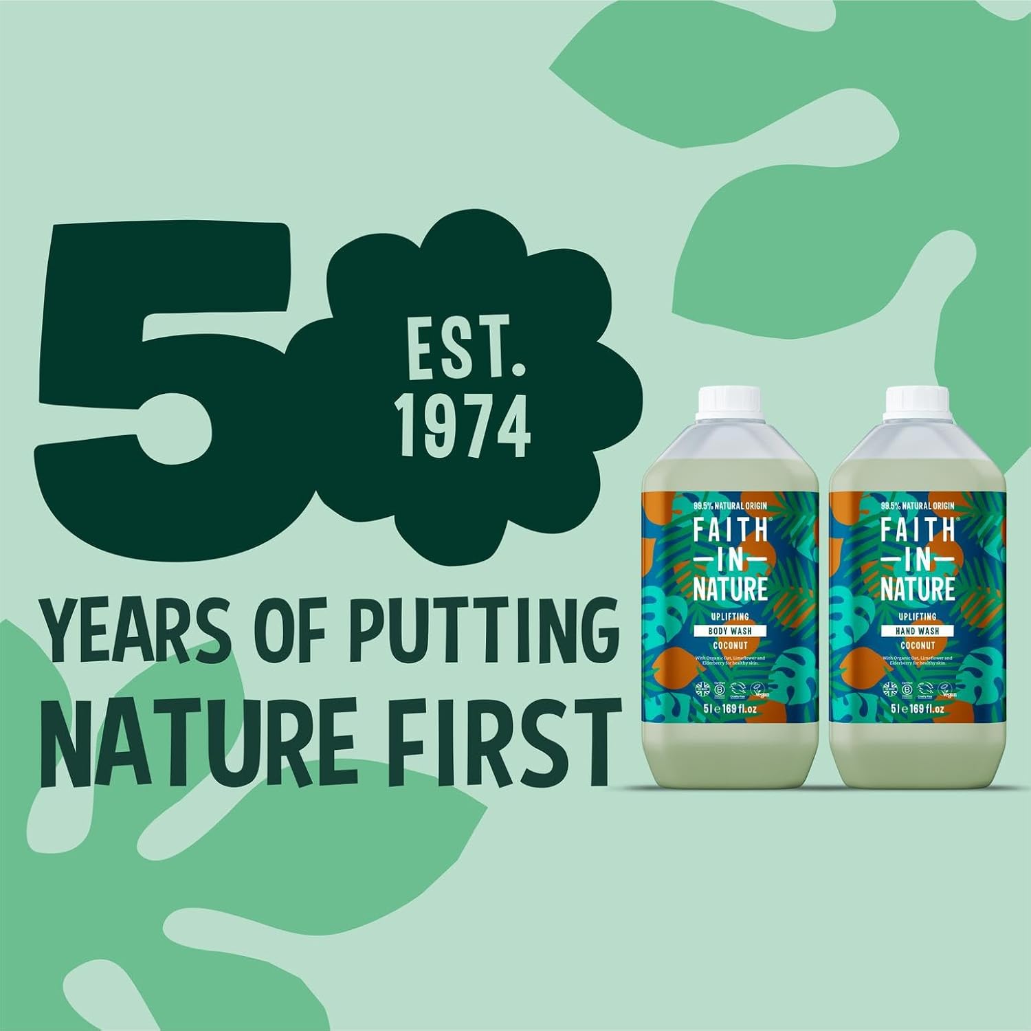 Faith In Nature Natural Coconut Hand Wash And Body Wash Set, Vegan & Cruelty Free, No Sls Or Parabens, 2 X 5L Pack