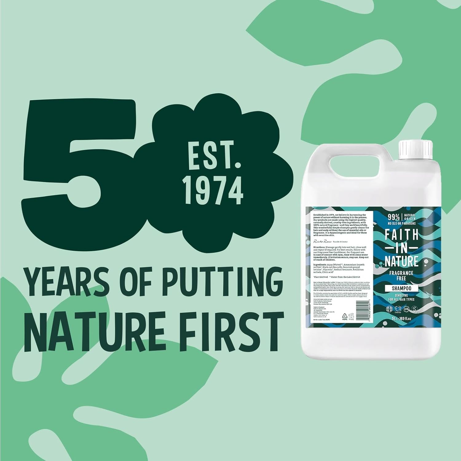Faith In Nature Natural Fragrance Free Shampoo, Sensitive, Vegan And Cruelty Free, No Sls Or Parabens, For All Hair Type, 5L Refill Pack
