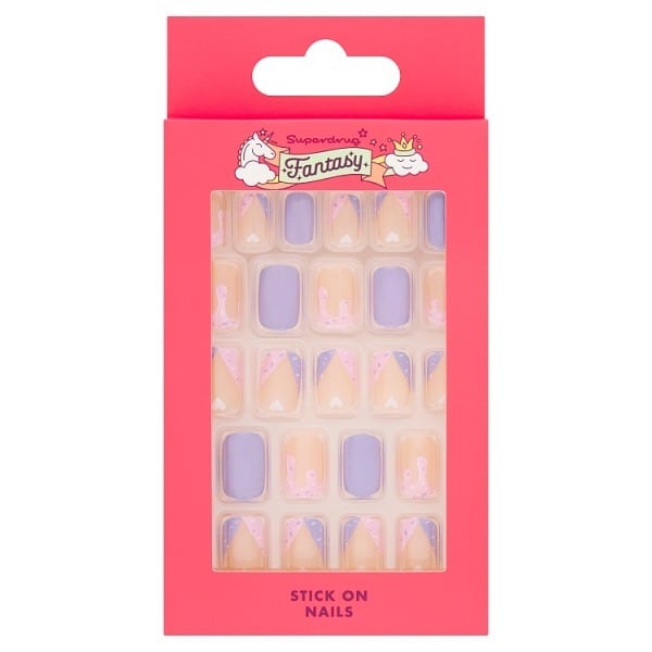 Product Information:24 stick on nails in purple print,Warning or Restrictions:Not suitable for children aged under 3 due to small parts which present a choking hazard. Do not apply to natual nails that are thin, damaged or infected. Adult supervision required. Use only as directed,Product Specification:Aqua, Polyvinyl Alcohol, Acrylates Copolymer, Propylene Glycol, Hydroxyethylcellulose, Phenoxyethanol,Product Uses:Carefully remove lid from tray and find correct nail size for each fingernail. Place the pre-glued nail at the base of the cuticle and firmly press onto your own nail. To remove, soak nails in warm water for 10-15 minutes. Gently peel the pre-glued nails from each finger, starting from cuticle area,Recyclable:Tray and Box - Recycle