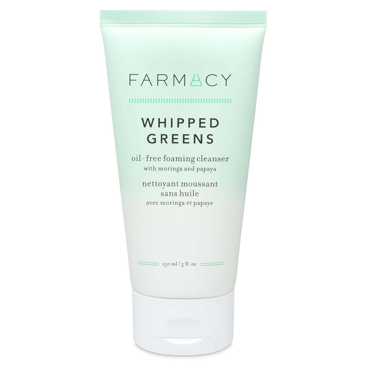 Purifies Skin: Whipped Greens face wash for women and men uses moringa to effectively remove dirt and impurities from pollution, leaving skin oh-so refreshedGentle Face Exfoliator: Papaya enzyme in the face cleanser gently exfoliates and clears pores of dirt, excess oil and impuritiesDetoxes and Absorbs Oil: The exfoliating face wash features green clay that helps detox, absorb surface oil, and remove buildup without stripping skin of its natural moistureReplenish Hydration: Sodium PCA aids in maintaining proper skin hydration and promotes a supple, healthy-looking appearance. A face cleaner that truly does it all!The Farmacy Way: Our goal is simple. We want to bring out the best version of your radiant self with the best possible, naturally derived ingredients. Each women's skincare and beauty product we craft uses cutting-edge science to harness the healing powers of ingredients that Mother Nature has been so kind as to provide for usFarmacy Whipped Greens Face Wash - Oil Free Foaming Facial Cleanser for Combination and Oily Skin (5.0 Fl Oz)