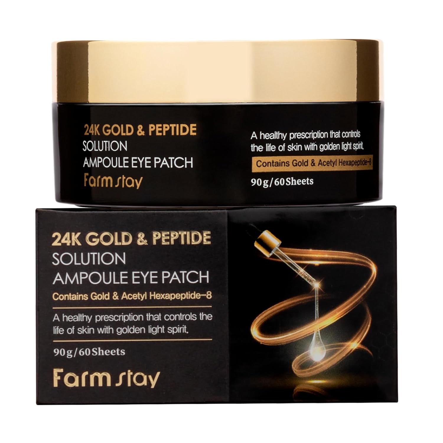 Farmstay 24K Gold And Peptide Solution Ampoule Eye Patch - Under Eye Patches For Wrinkles - Improves Skin Elasticity - Brightens Dark Circles - 60 Pc