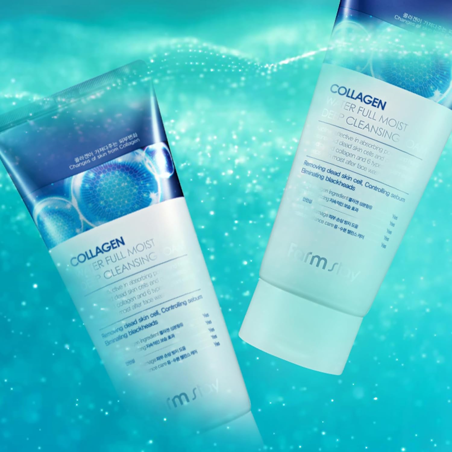 Farmstay Collagen Water Full Moist Deep Cleansing Foam - Foaming Facial Cleanser - Clears Dirt And Dead Skin - Deeply Moisturizing Face Wash - 6.08 Oz