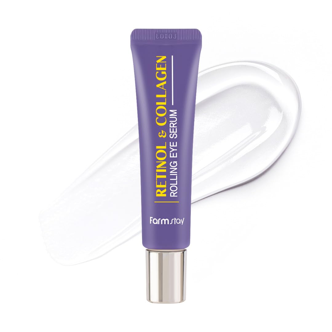 Farmstay Retinol & Collagen Rolling Eye Serum For Dark Circles And Puffiness - Puffy Eye Bags, Fine Lines, Dark Circles, And Wrinkles Correction Eye Serum - Korean Eye Cream 0.84 Fl. Oz