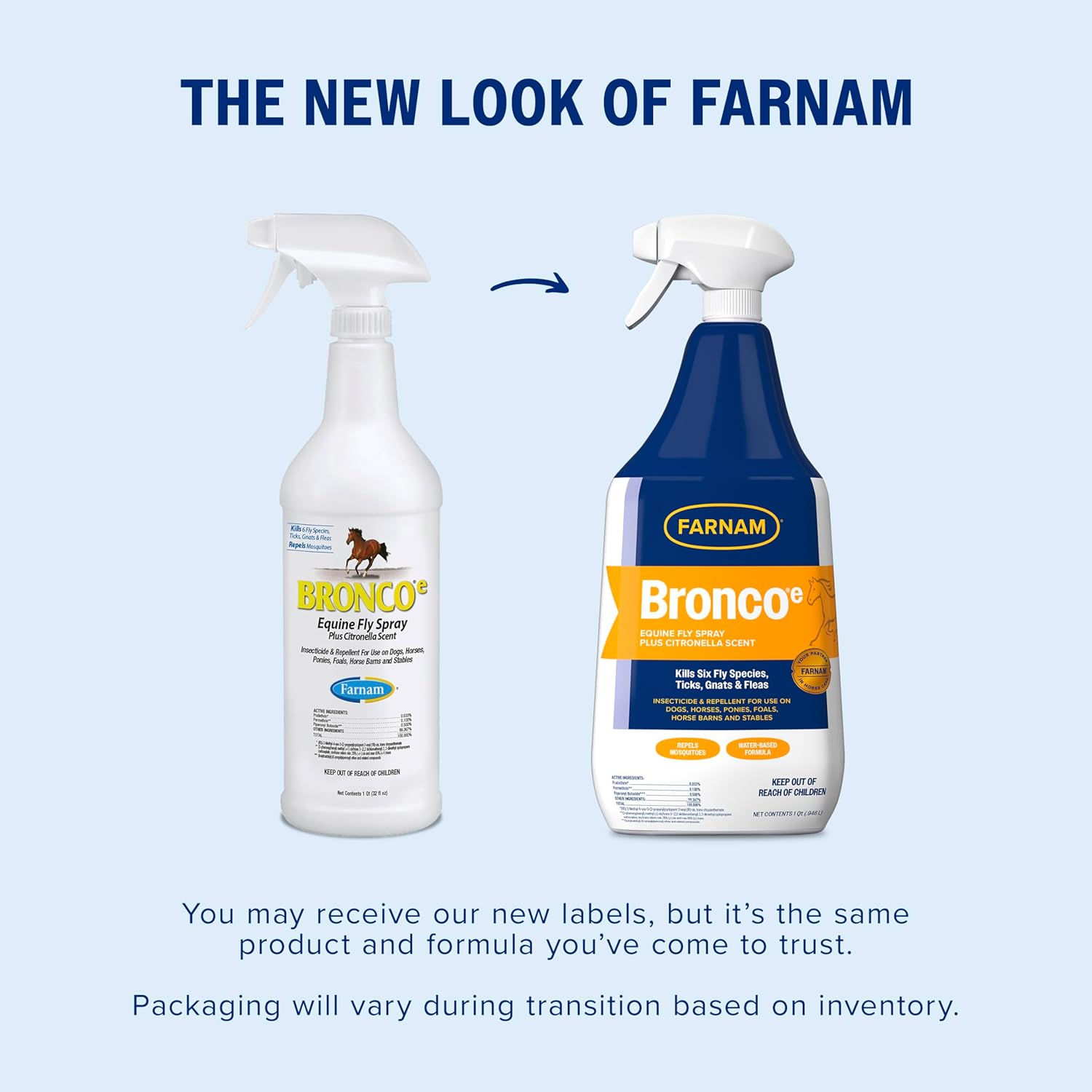 Farnam Broncoe Fly Spray Plus Citronella For Horses, Dogs & Premises - Kills Flies, Ticks, Fleas, Lice & Mosquitoes - Water-Based, Non-Oily Multi-Purpose Insecticide - 32 Oz
