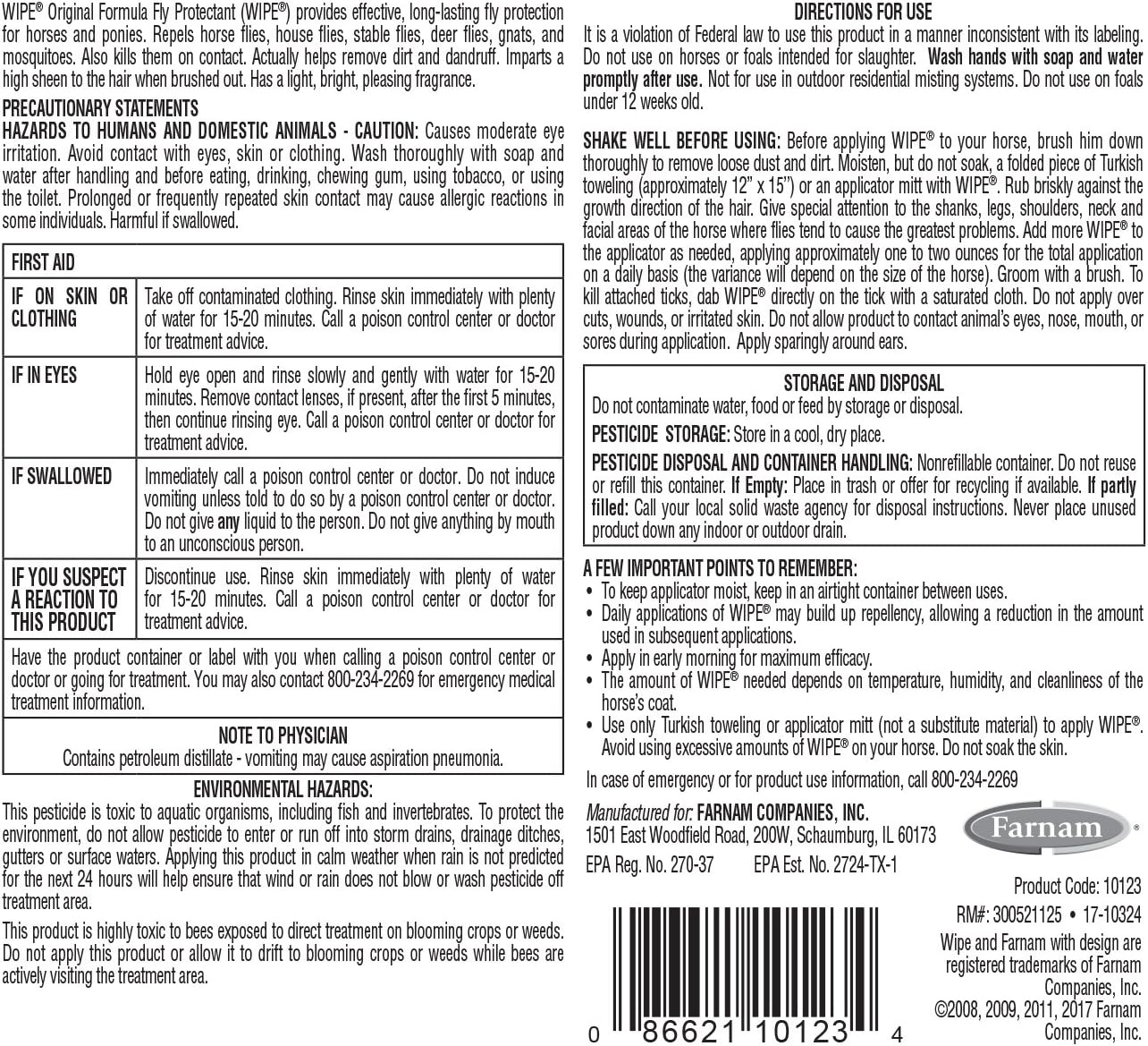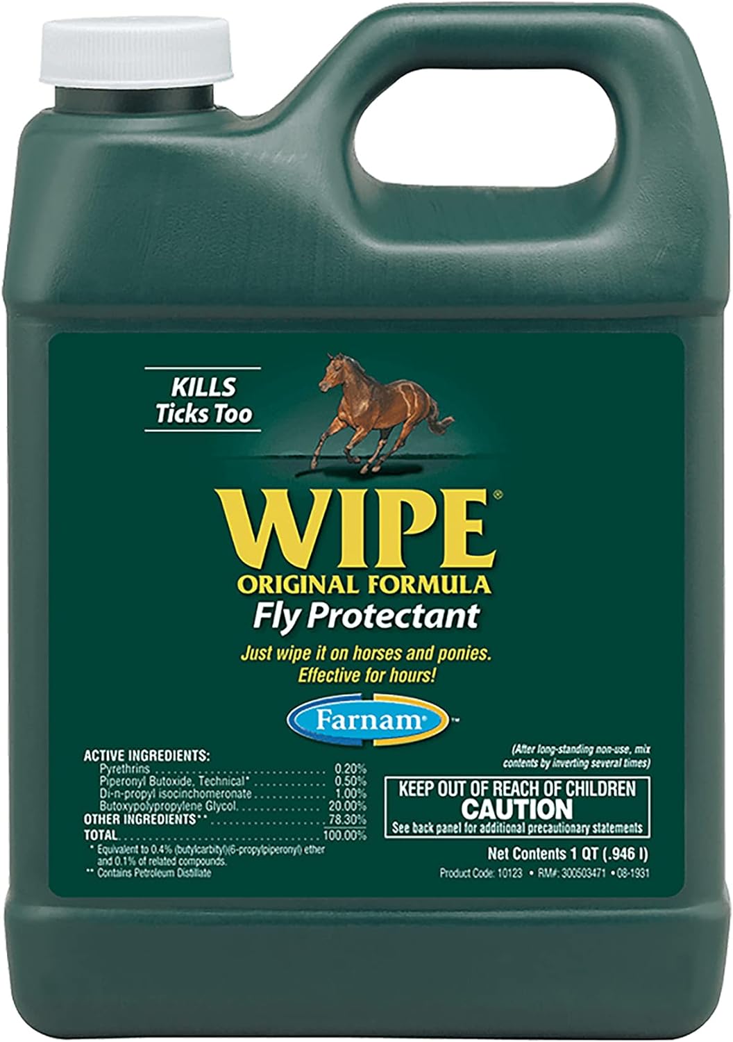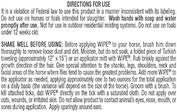 Defend Your Horse'S Health And Comfort! Wipe Original Formula Fly And Tick Repellent Is Ideal For Horses Who Dislike Spray-On Topical Insecticides And Repellents. Wipe Horse Pest Control Provides Effective, Long-Lasting Fly Protetion For Horses And Ponies. Wipe Original Lets You Control Exactly Where The Product Goes. The Convienent Wipe On Formula Repels And Kills Horse, House, Stable And Deer Flies, Gants, Mosquitoes And Ticks Too. Plus It Adds A Show Ring Shine To Your Horse'S Coat And Helps Remove Dust, Dirt And Dandruff. Wipe Original Horse Fly Repellent Has A Light, Bright, Pleasing Fragrance. Horse Owners Have Been Relying On Wipe Original Fly Repellent For Horses For More Than 40 Years