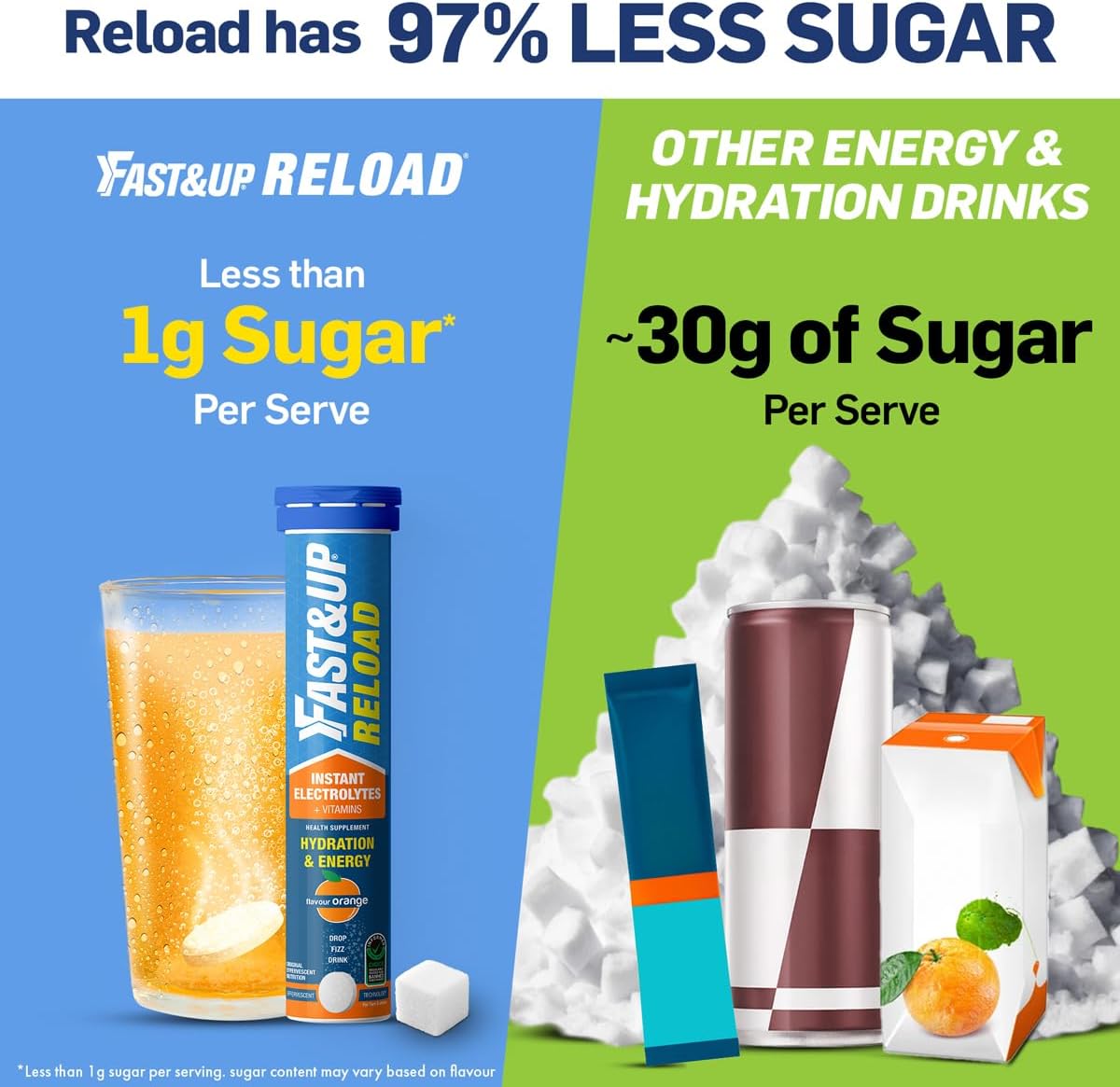 About this item MADE FOR YOUR INSTANT HYDRATION: Replenish lost electrolytes with Fast&Up Reload that helps ensure you're well hydrated so you produce your best performance. As an effervescent tablet that readily dissolves in plain water, it is convenient and easy-to-make. Simply mix with water for a refreshing drink to help rehydrate your body and dominate your next workout. Improve your hydration with just a drop of one of our electrolyte capsules. BEAT FATIGUE: If fluid and electrolyte losses are not replaced, dehydration occurs which is a major cause of fatigue. Vital electrolyte are lost through sweat; left unreplaced this causes dehydration and fatigue. Once dehydrated, our body temperature rises; our heart rate increases; we deplete carbohydrate stores quicker and we perceive the exercise to be more intense. Fast&Up Reload complete electrolytes help replenish lost salts instantly and reduce fatigue. THE BETTER NUTRITION: Designed with premium Swiss effervescent technology Fast&Up Reload helps in faster rehydration and energy. The effervescent format of Fast&Up helps increase hydration, it is gentle on stomach and fast acting in nature. HOW TO USE: Drop 1 effervescent tablet in 250 ml of water, Wait till it dissolves completely and the drink is ready to be consumed. For 500 ml - Drop 2 effervescent tablets, wait till it Dissolves and Drink. Fast&Up Reload can be consumed by anyone during workout or anytime during the day by someone who leads an active life. INFORMED CHOICE CERTIFIED: Our world-approach to banned substance testing and quality nutrition makes us the nutrition partner of choice for world champions, teams, coaches and athletes. Informed Choice is a global quality affirmation program that we underwent voluntarily for you. A product with Informed-Choice logo has undergone regular checks and tests. Hence, trusted, tested and proven nutrition for your daily health. See more product details,MADE FOR YOUR INSTANT HYDRATION: Replenish lost electrolytes with Fast&Up Reload that helps ensure you're well hydrated so you produce your best performance. As an effervescent tablet that readily dissolves in plain water, it is convenient and easy-to-make. Simply mix with water for a refreshing drink to help rehydrate your body and dominate your next workout. Improve your hydration with just a drop of one of our electrolyte capsules,BEAT FATIGUE: If fluid and electrolyte losses are not replaced, dehydration occurs which is a major cause of fatigue. Vital electrolyte are lost through sweat; left unreplaced this causes dehydration and fatigue. Once dehydrated, our body temperature rises; our heart rate increases; we deplete carbohydrate stores quicker and we perceive the exercise to be more intense. Fast&Up Reload complete electrolytes help replenish lost salts instantly and reduce fatigue,THE BETTER NUTRITION: Designed with premium Swiss effervescent technology Fast&Up Reload helps in faster rehydration and energy. The effervescent format of Fast&Up helps increase hydration, it is gentle on stomach and fast acting in nature,HOW TO USE: Drop 1 effervescent tablet in 250 ml of water, Wait till it dissolves completely and the drink is ready to be consumed. For 500 ml - Drop 2 effervescent tablets, wait till it Dissolves and Drink. Fast&Up Reload can be consumed by anyone during workout or anytime during the day by someone who leads an active life,INFORMED CHOICE CERTIFIED: Our world-approach to banned substance testing and quality nutrition makes us the nutrition partner of choice for world champions, teams, coaches and athletes. Informed Choice is a global quality affirmation program that we underwent voluntarily for you. A product with Informed-Choice logo has undergone regular checks and tests. Hence, trusted, tested and proven nutrition for your daily health