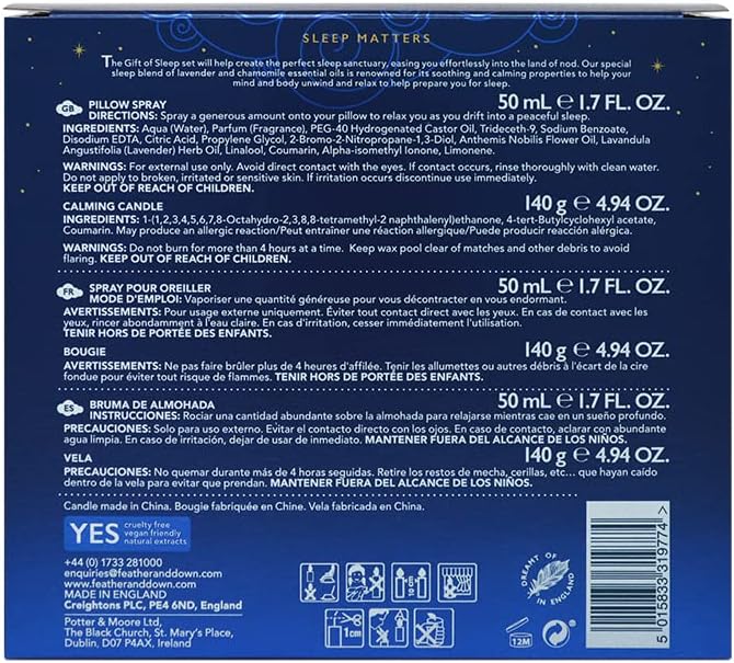 Feather & Down Sweet Dream Gift Of Sleep Set (50Ml Pillow Spray & 140G Calming Candle) - Lavender & Chamomile Essential Oils To Help Prepare You For A Restful Night'S Sleep