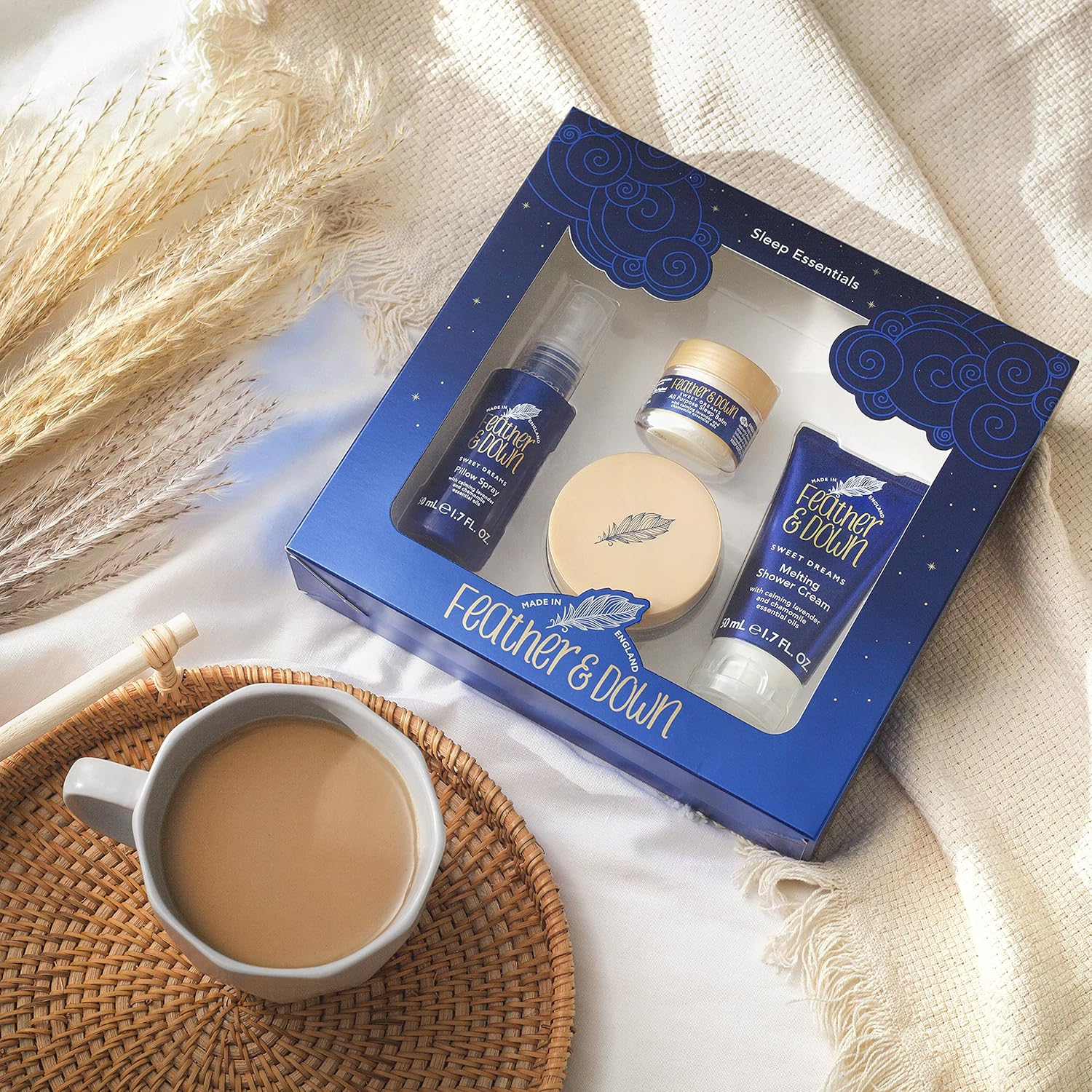 Feather & Down Sweet Dream Sleep Essentials Gift Set (50Ml Pillow Spray, 50Ml Melting Shower Cream, 16G All-Purpose Sleep Balm & 50Ml Sleep Butter) - Cruelty Free & Vegan Friendly